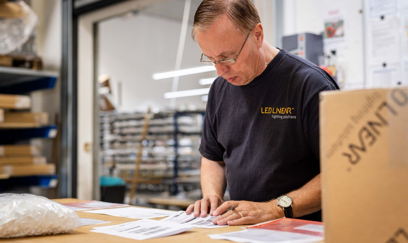 Effective and efficient packaging and shipping are of great importance to any company. For LED Linear, it represents one of the success factors in ex-works deliveries. Because this is where the goods are picked for the individual customers, checked one last time for functionality and professionally packed. A sustainable packaging concept ensures that less outer packaging is used and that the luminaires arrive intact and well-labelled at the customer's premises or directly at the construction site.