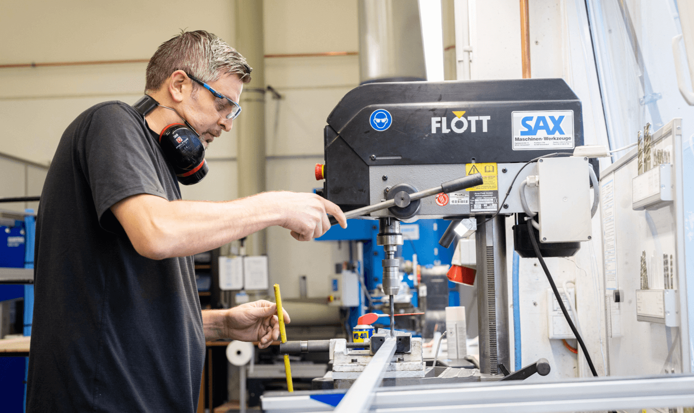 The main focus of metal processing is the preparation of all luminaire profiles for subsequent further processing in the indoor or outdoor luminaire sector. The operation of computer-controlled milling/sawing and drilling machines requires a great deal of manual skill and technical understanding.