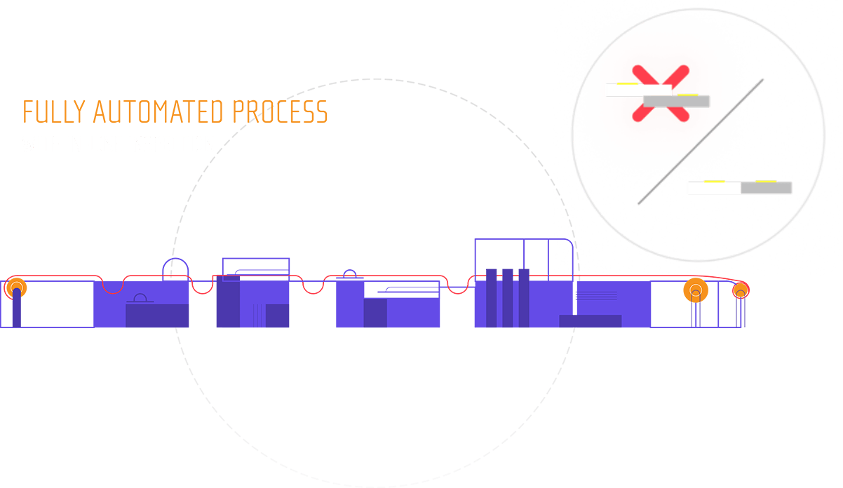 The advantage of this method is the continuous substrate. There are no weak points on the LED tape and therefore less defective rates. There are automated checkpoints within the line throughout the entire production process. This way, irregularities can be quickly identified and corrected.