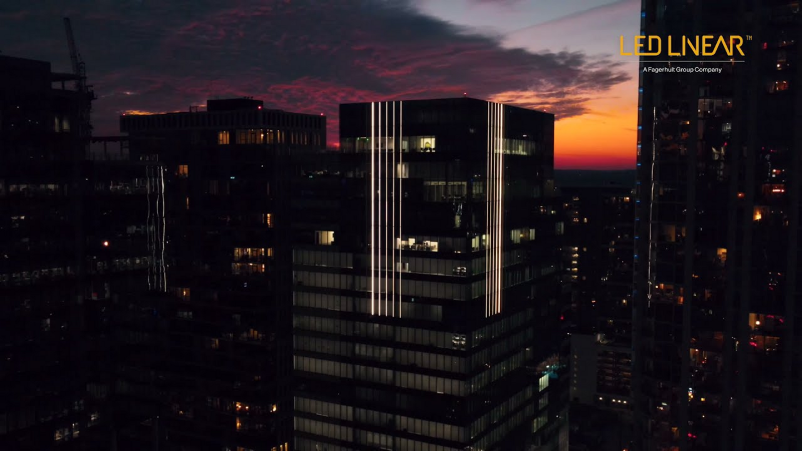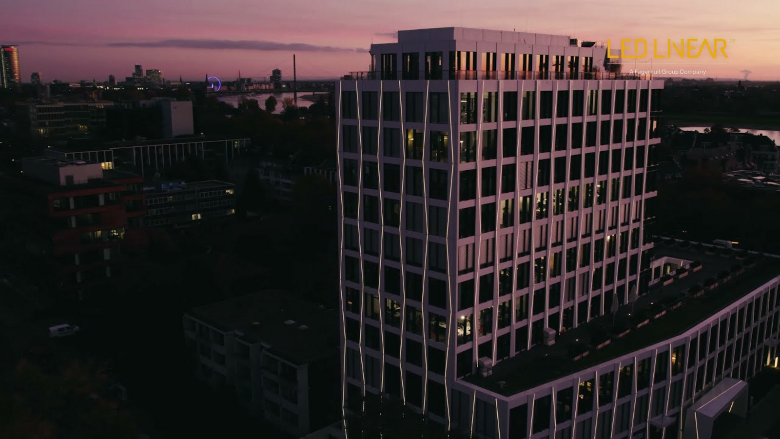 LED Linear™ drone video facade lighting, Office building Deck 21, Duesseldorf, Germany