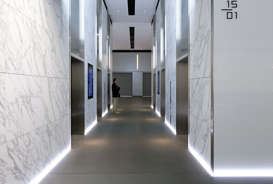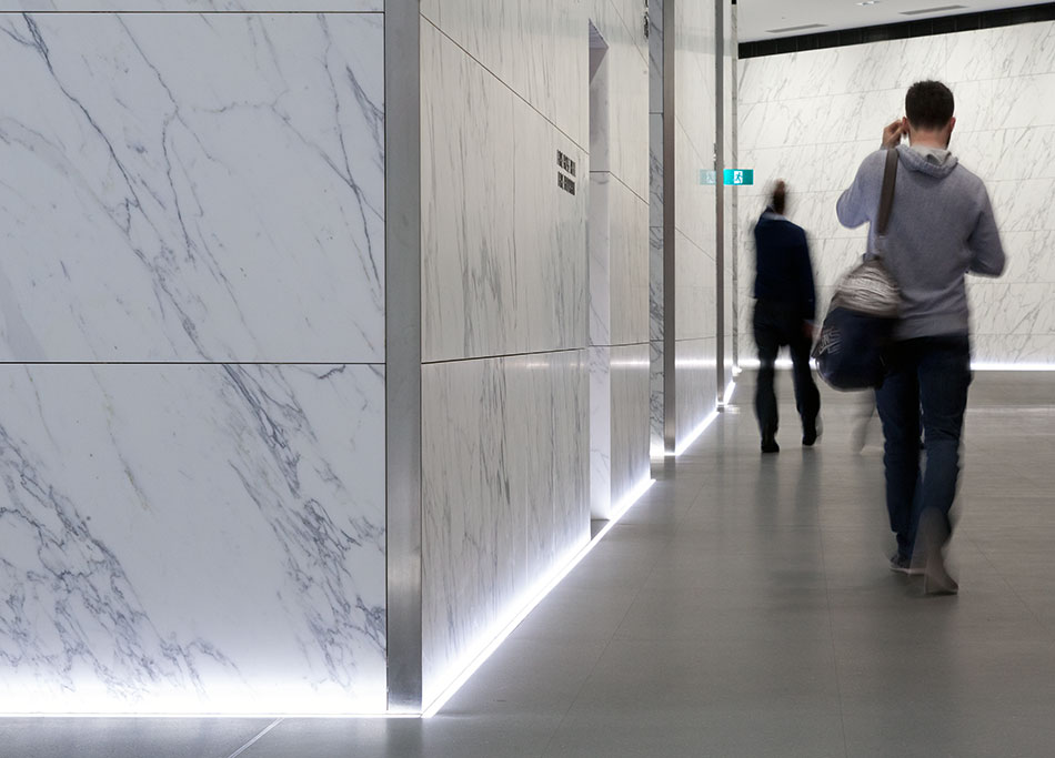 The spacious and bright entrance area was equipped with linear lighting solutions of LED Linear. In the interface between floor and wall the XOOLUM HYDRA HD6 IP67 in W835 was installed. The IK10 certified luminaire emits absolutely homogeneous and dot-free light due to the opal light emission surface. The public areas and hallways are comfortable and evenly illuminated. The lighting sets appealing accents and highlights the sophisticated equipment, at the same time it also facilitates the orientation in the building.