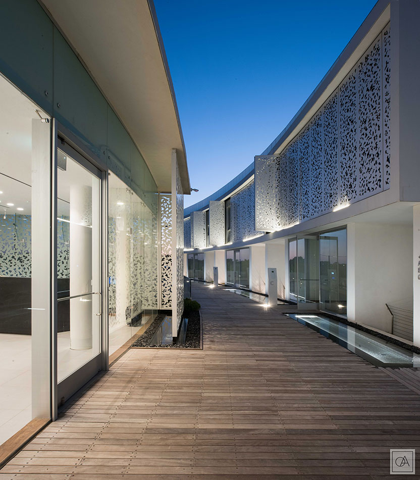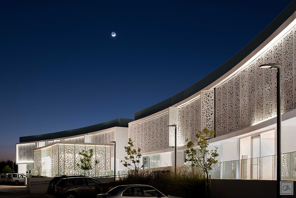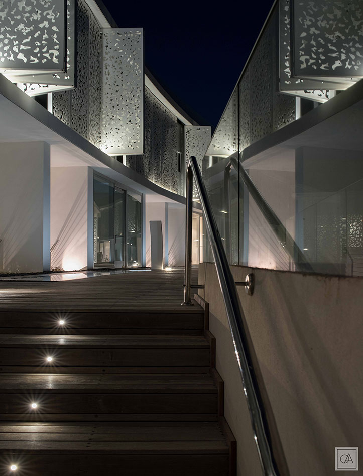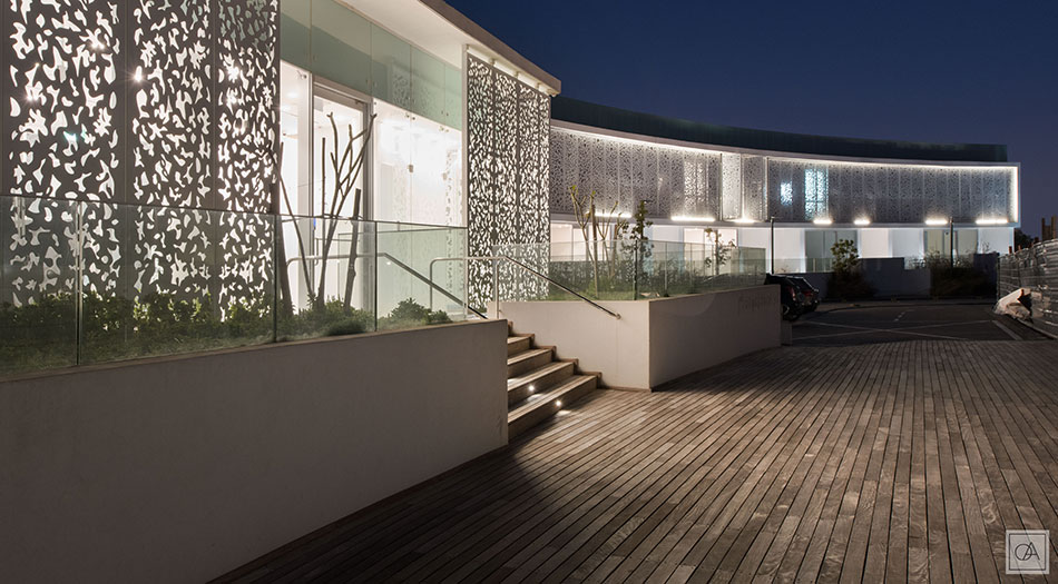 The integrated lighting is modern and emphasizes the luxurious character of the building complex. On the facade of the VarioLED™ Flex VENUS was used. Its diffused light gently highlights the interesting structure of the façade at night.
