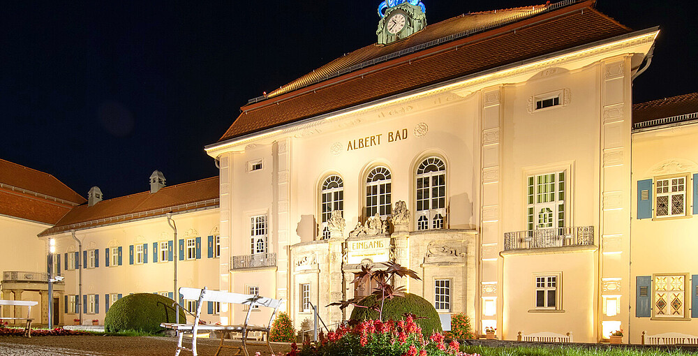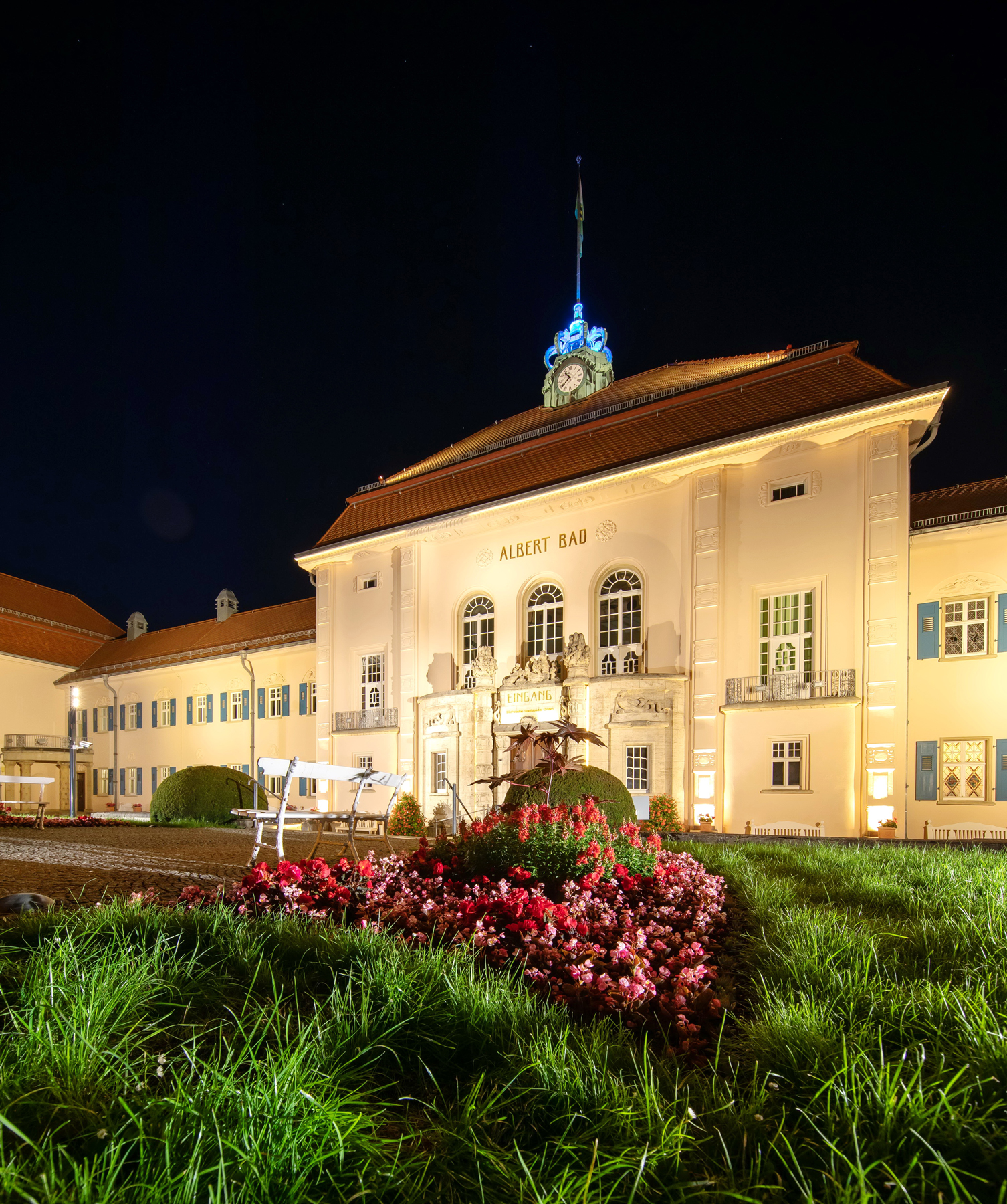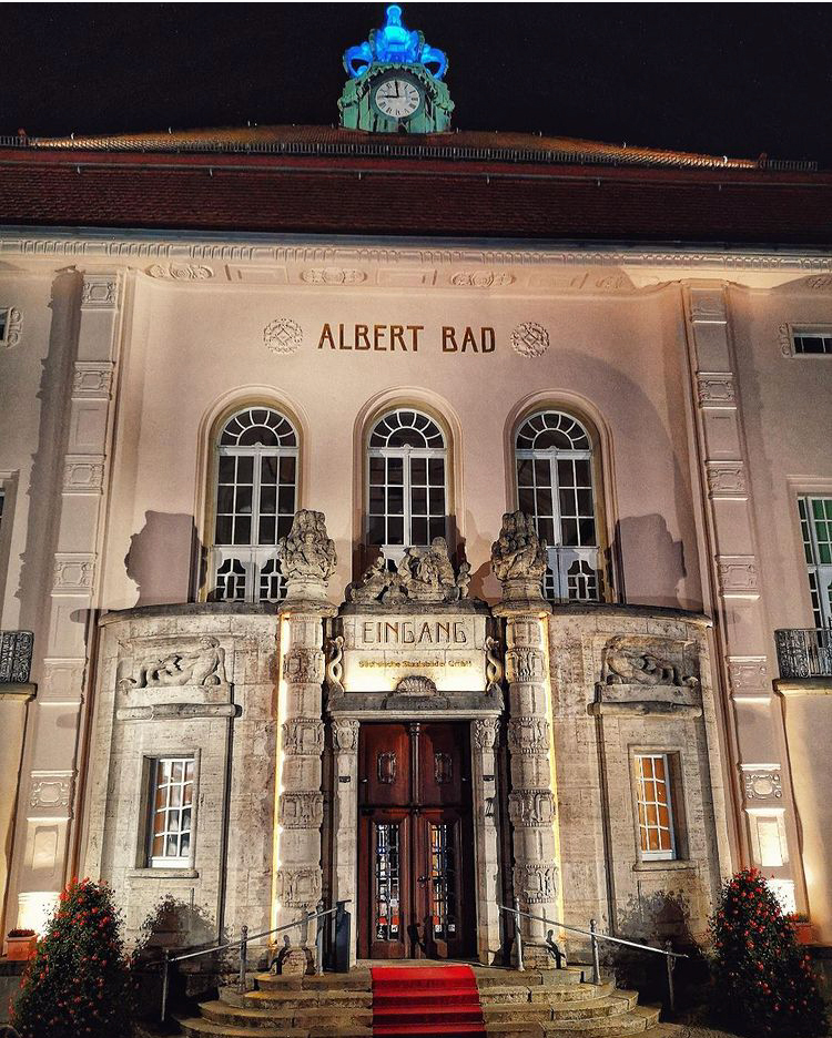 The main façade of the Albert Bad was illuminated with various linear LED light lines: