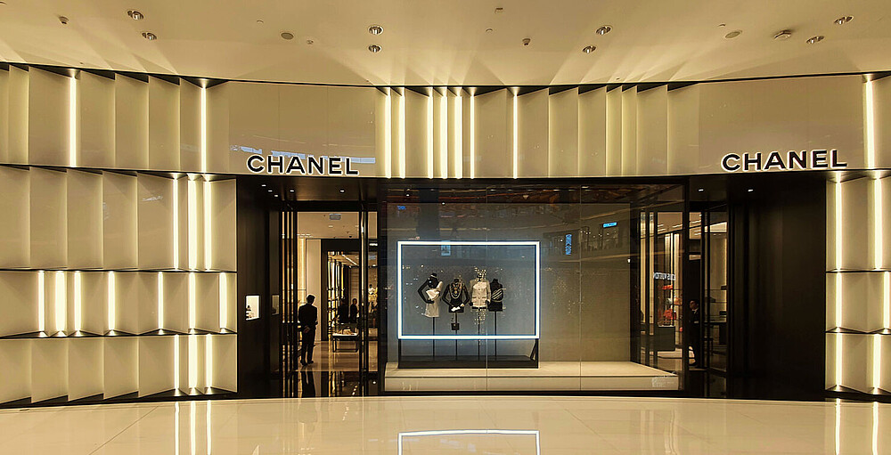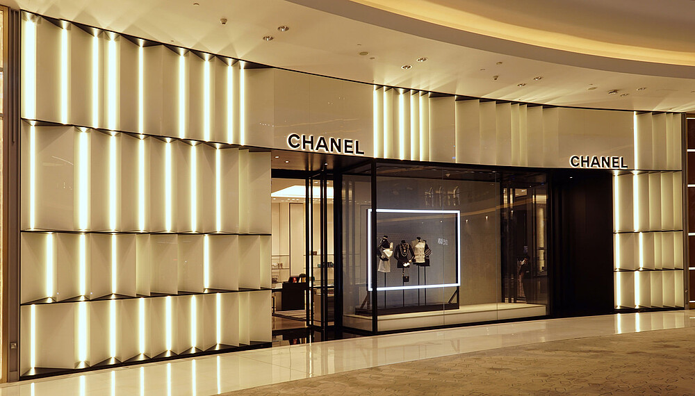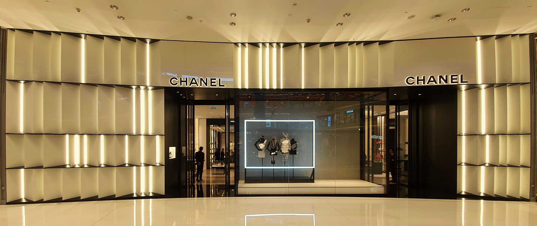 Amidst the backdrop of the Dubai Mall, the Chanel store shines brightly. The lighting with VENUS Top View has been precisely positioned within the store's facade to accentuate the architecture while creating an appealing visual aesthetic. The clear, elegant illumination of the facade bestows an exclusive allure upon the store, presenting the Chanel brand in its unique brilliance.