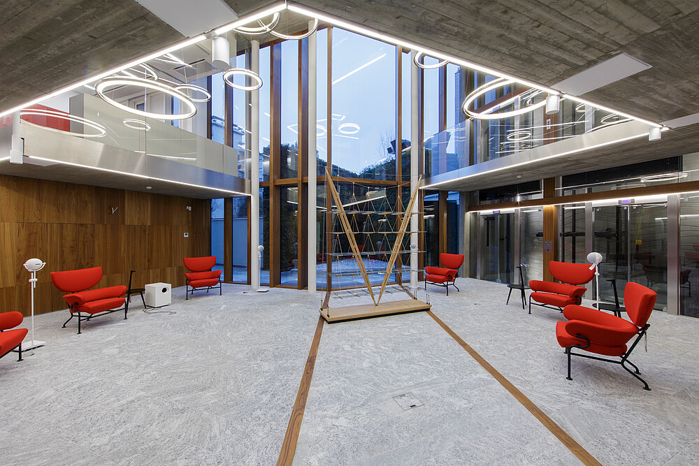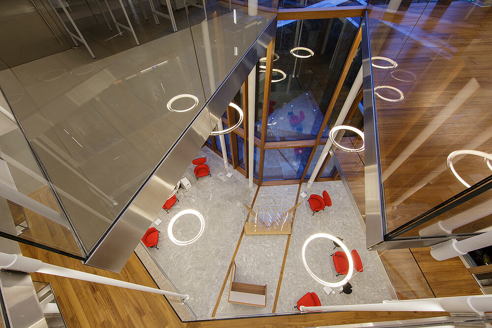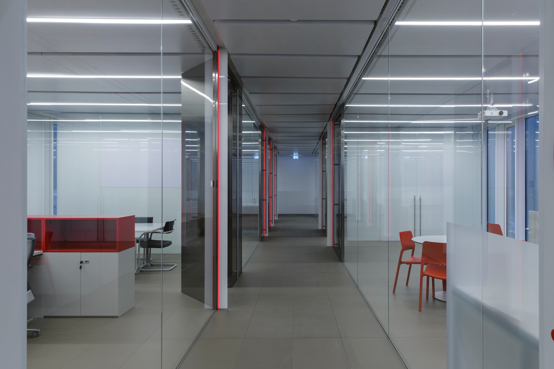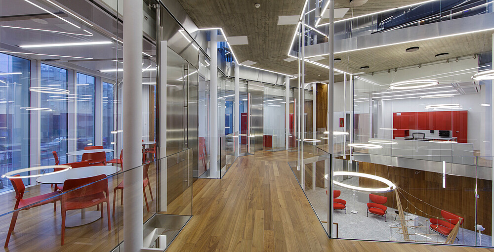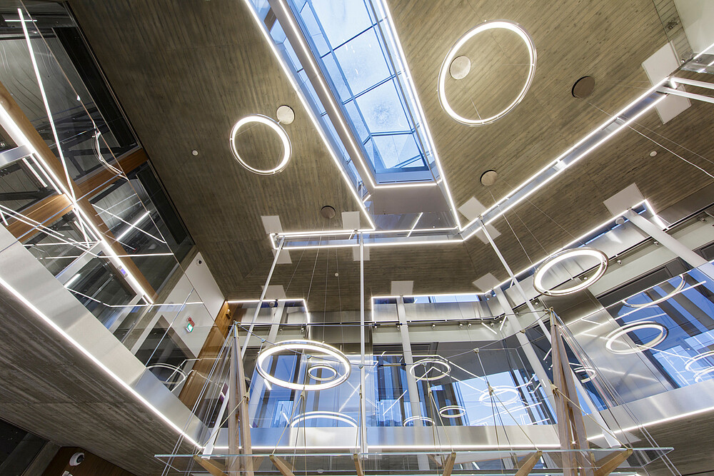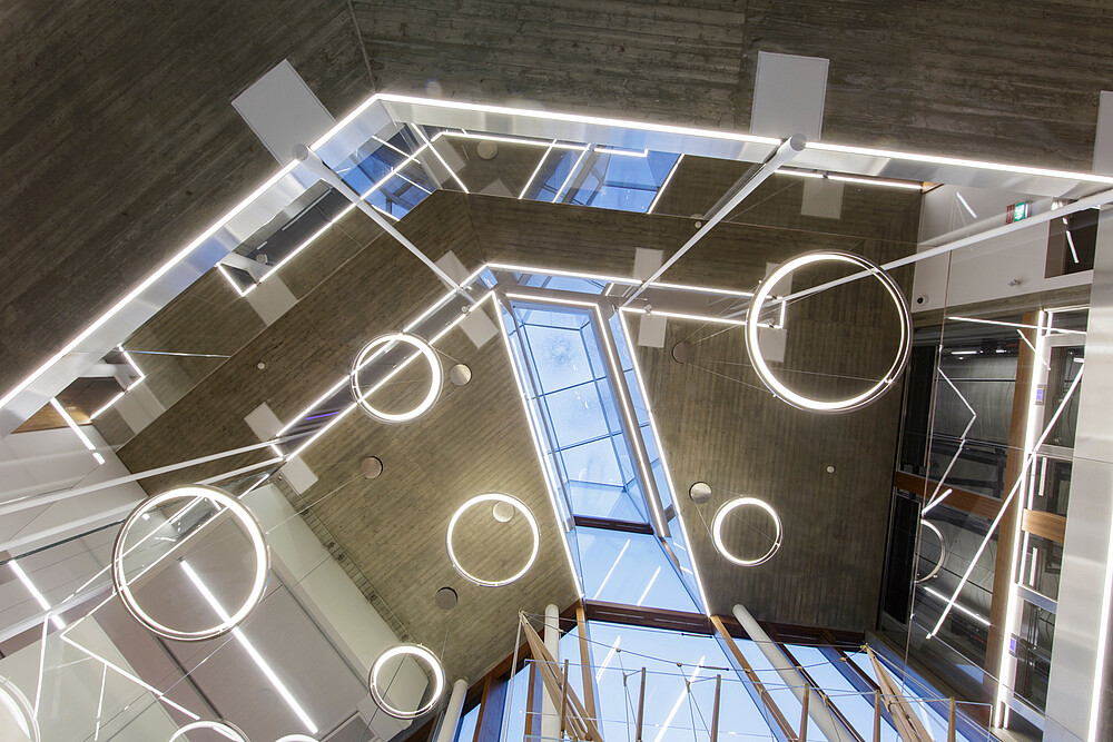 Functional light was used in the corridors, halls and basements for this company headquarters of the Mailland company. The products XOOLINE™ HD15 with opal cover in 3,000 Kelvin as well as VENUS light lines in RGB are located in the various application areas.