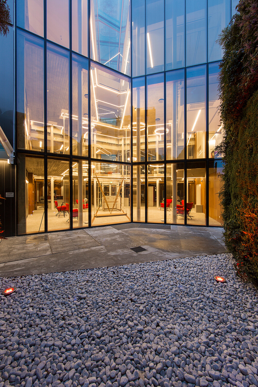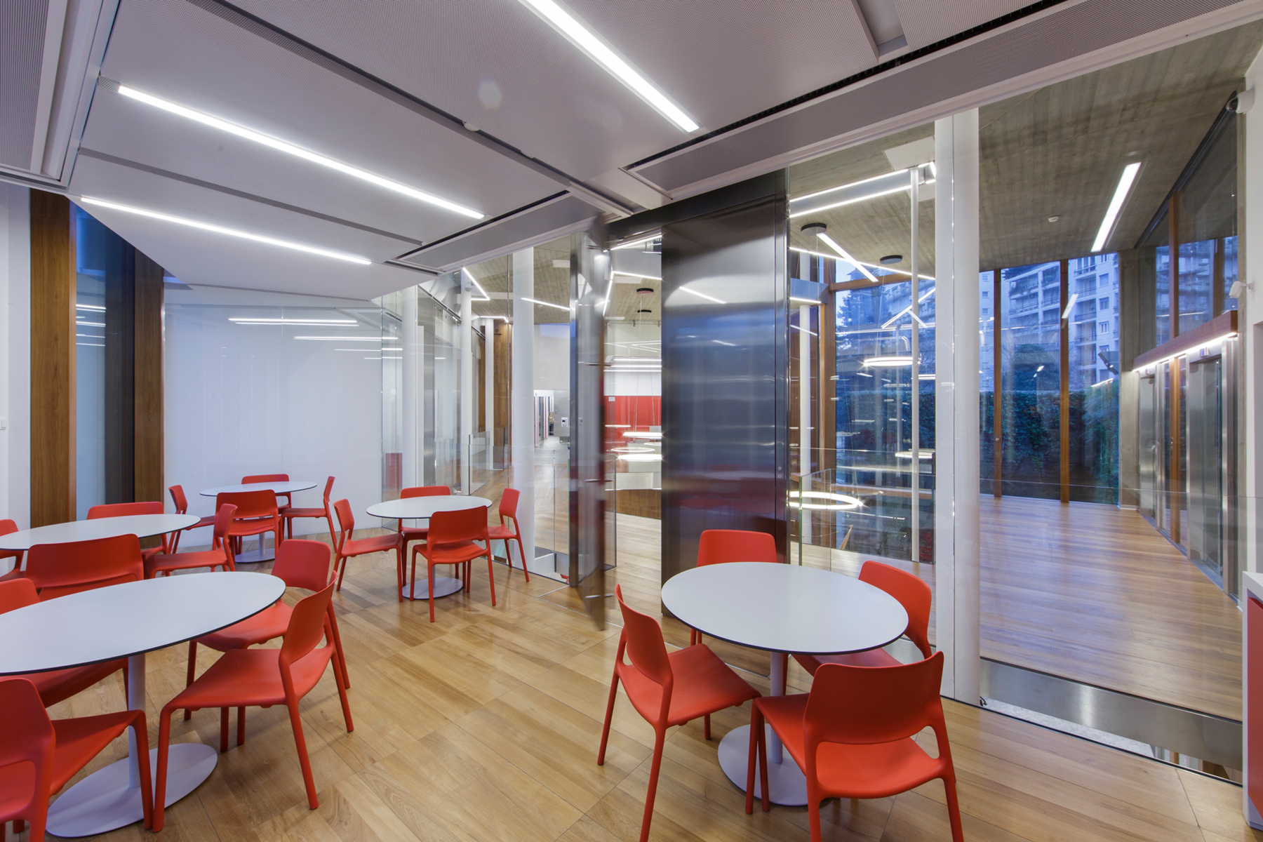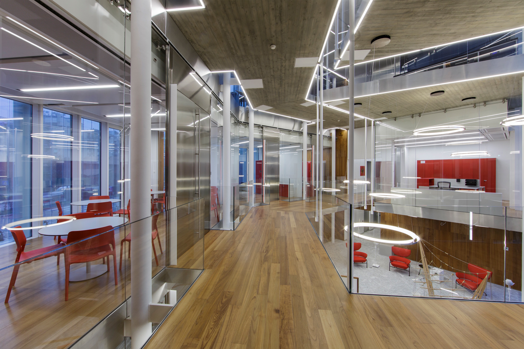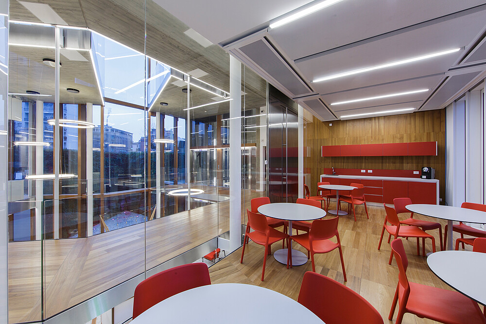 Functional light was used in the corridors, halls and basements for this company headquarters of the Mailland company. The products XOOLINE™ HD15 with opal cover in 3,000 Kelvin as well as VENUS light lines in RGB are located in the various application areas.