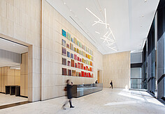 The seamlessly produced photograph has a total length of 22 meters, which poses a major challenge for both production and assembly. A high image resolution and the experience of the printer guaranteed perfect print quality. Up to 11 people were needed for the unfolded assembly of the huge one-piece picture. The backlight was realized with the LED tape VarioLED™ Flex HYDRA HD15.