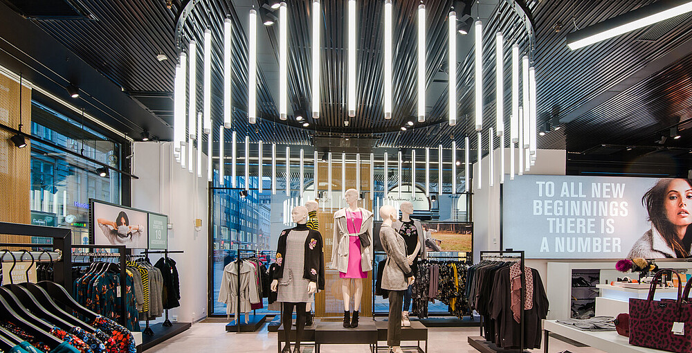 This light installation at the Aleksi 13 department store in Helsinki serves as a crown and eye-catcher in this inspiratory area, which was made from 50 pieces of vertically installed LED Linear™ XOOTUBE™ luminaires. The diameter of this round installation is up to 3.5 meters.