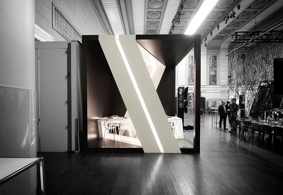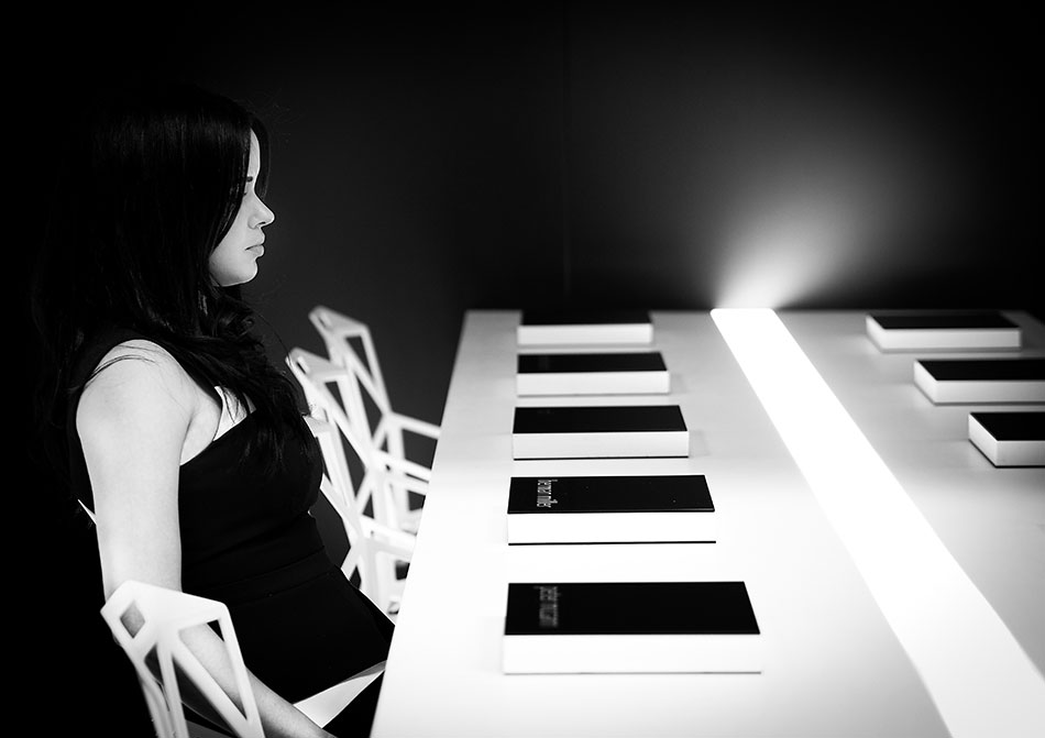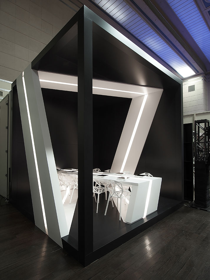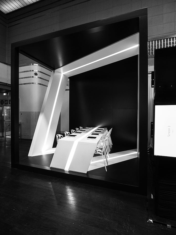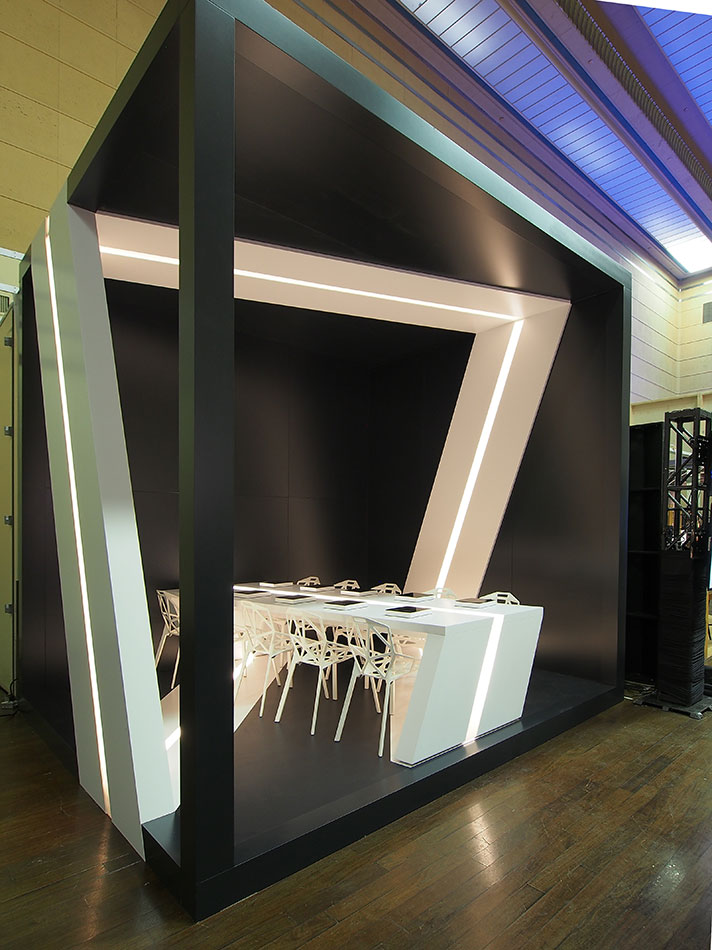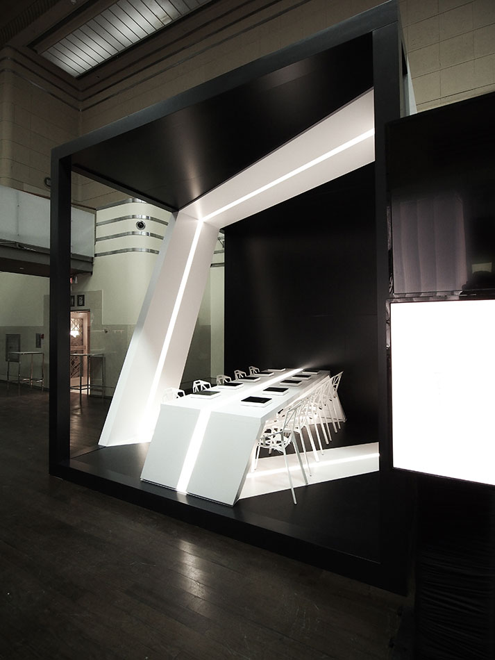 “Our design inspiration came from a desire to explore the concept of a Möbius strip that would wrap the entire volume and also serve as the dining surface. Our intent was to make the Möbius strip the focus of the space and to make an enclosure that would dematerialize. We wanted a dramatic contrast between void and mass and we hope you like the result. “ - Michelle Park, Project Manager.