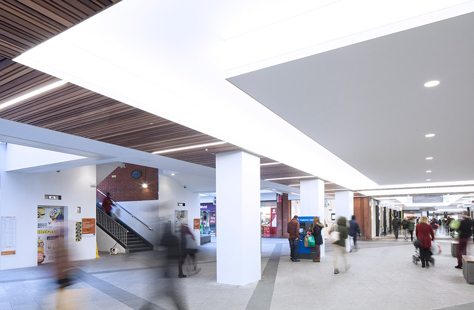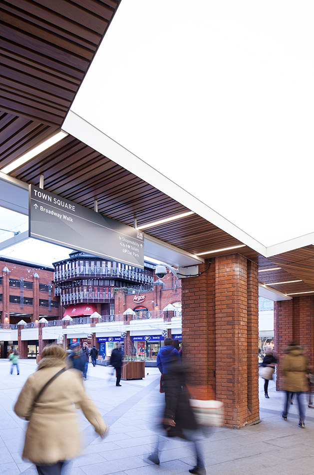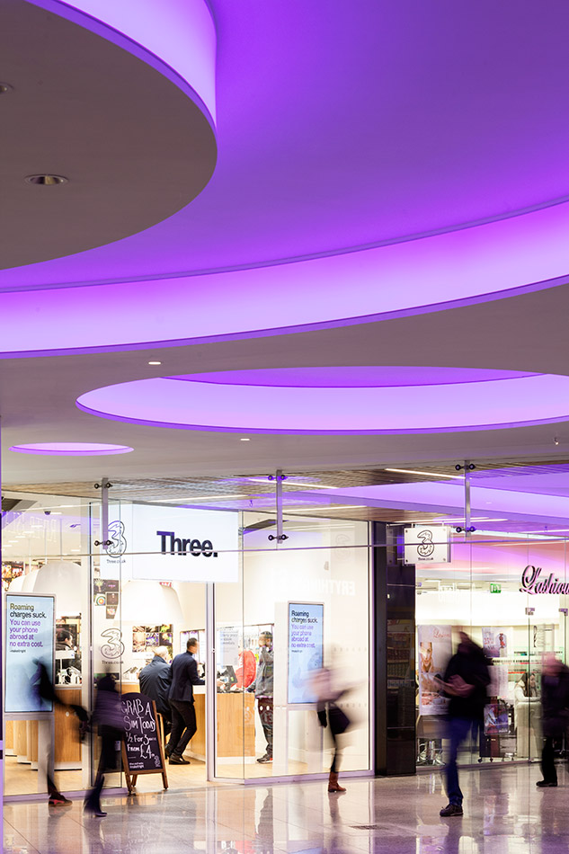 The centre now benefits from near daylight quality lighting in the malls that transitions to restrained colour in the evenings, and warm light that only comes on at night to create a pleasant ambience in the colonnade area.