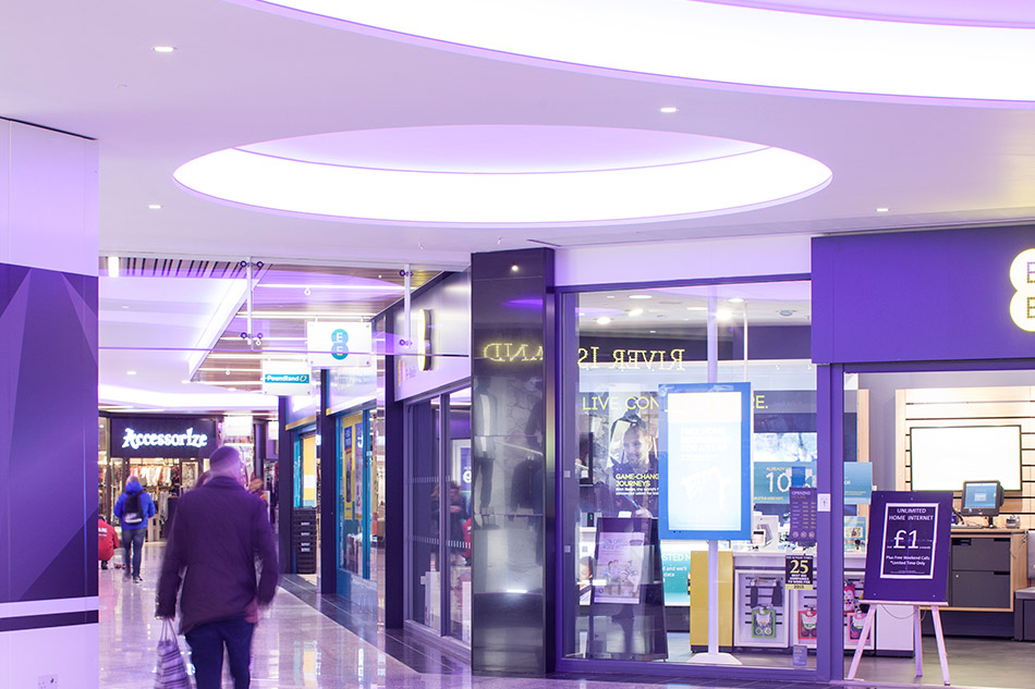 Built in the mid eighties, Ealing Broadway Shopping Centre had become tired looking and was in need of a major refurbishment. British Land acquired the site in 2013, and after a period of consultation and planning, embarked upon a £12m upgrade of the centre, aimed at attracting premium tenants and increasing footfall. The lighting design was made by BDP. The brief was to design a lighting solution that would manage ceiling brightness to avoid gloominess during the day and create a sophisticated atmosphere at night.
