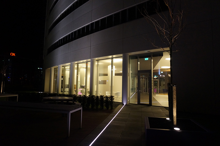 The former location of Eneco, which is one of the biggest energy suppliers of Holland, is completely renovated and now used as a multi functional building called “Eclipse”. The light line in the floor, OCEANOS IQ White, starts outside, on the parking of the building, and simply guides visitors inside the building. The luminaire is not only used for decorative purposes, but also provides the visitors orientation and safety as a guiding light.