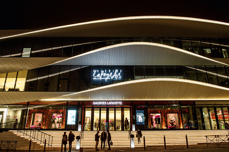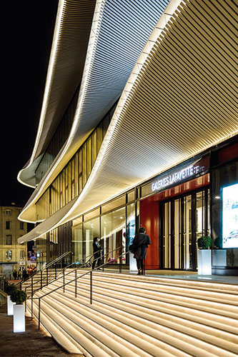 The new façade of the Galeries Lafayette Centre Bourse in Marseille, designed by Moatti-Rivière, is an architectural masterpiece, which is embellished with a spectacular light line of LED Linear™. The project was recently awarded with the "Prix Versailles Architecture Commerciale 2015".
