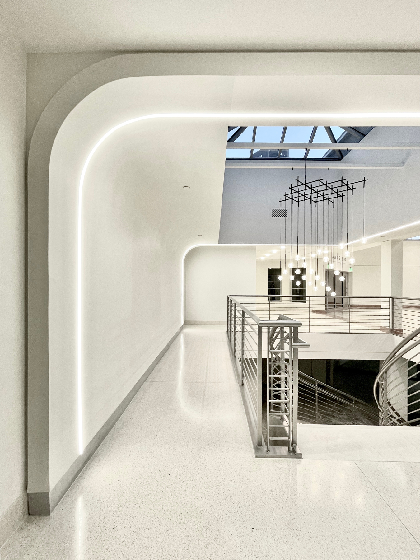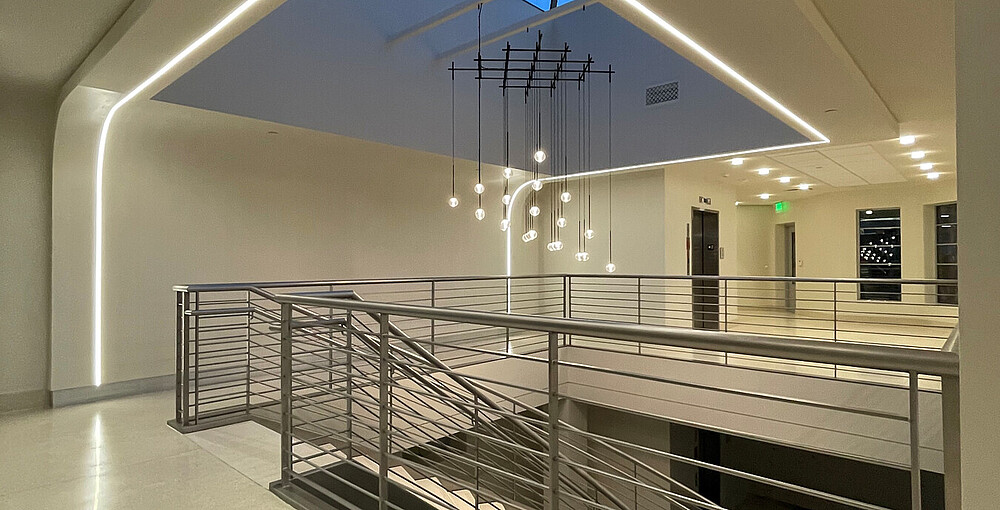 This historic building, located in the heart of downtown Birmingham recently underwent a two year renovation. The goal of the project was to preserve the French modern charm of the old bus terminal while updating it to meet the needs of a new modern tenant. The flexibility and color performance of PHOBOS (Top View) was the perfect choice to accent the organic curvature of the architecture, providing a seamless continuous line of light from wall to ceiling.
