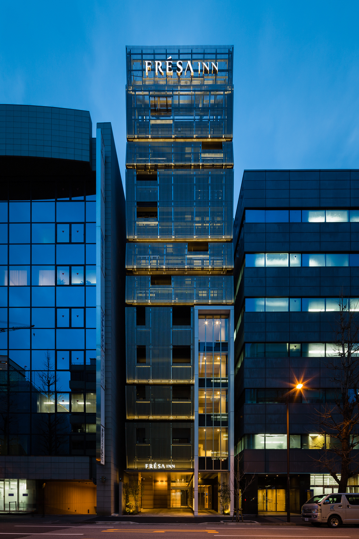 Fresa Inn Tokyo Kanda is one of the business hotels developed by the Sotetsu group. It is near the Kanda station and makes it stand out from the adjacent building. It has become the landmark of customers. The exterior lattice structure or louvre structure of the building was illuminated with the HYDRALUX™ LD15 and ensures a pleasant lighting with 2,200 K.
