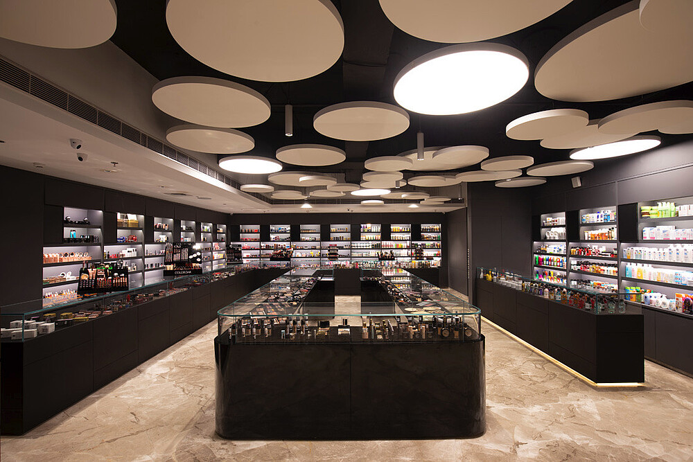 Also, XOOLUM™ R IP20 was proposed with combination of down lighting and wall washer optics over the counter which gave good amount of lux levels on the counters and sufficient light on wall displays with wall wash optics, complemented with MARS NANO with 65° as second layer to add lights.