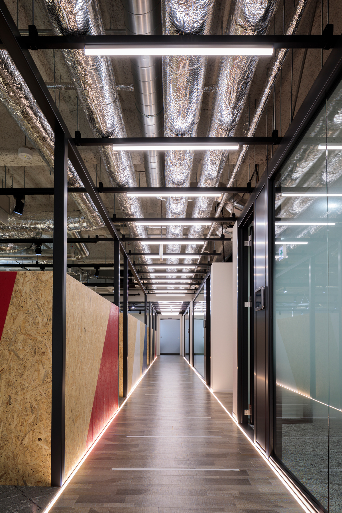 The ADONIS IQ White was installed on both sides of the floor, along the corridor of the office area to provide orientation. Adapted to the time of day, the light color changes.