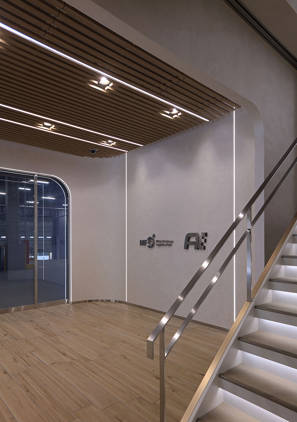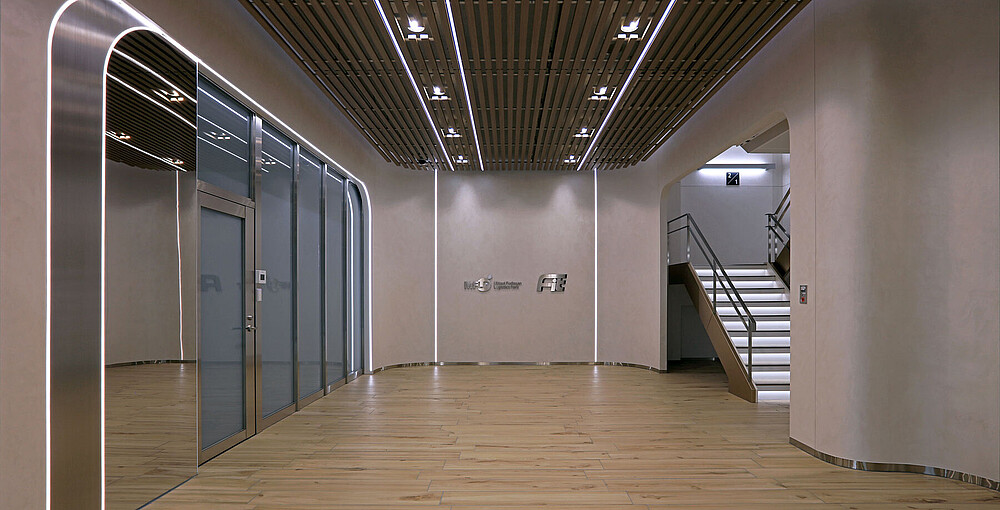 To implement this project, the flexible VENUS light line was chosen. With straight and curved patterns, the lights create lines of light, emphasizing the refined simplicity of the interior while simultaneously adding an artistic dimension. The deliberate selection and placement of the VENUS family transformed the appearance of the entrance area, creating an inspiring environment that captivates and welcomes visitors.