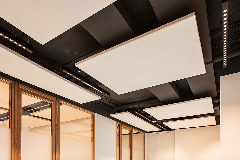 The design luminaire LYRA ECLIPSE IP40 has been installed above the meeting tables on the ceiling. The luminaire not only serves as a functional light source but also as an aesthetic design element that complements the modern character of the office complex.
