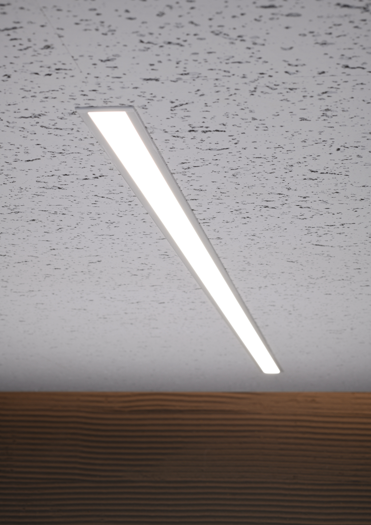 In the rented office space, the LUNA IP40 luminaire was installed as a clear light line on the ceiling to radiate a pleasant working atmosphere. Due to its elegant and slim design, the luminaire fits stylishly into the ceiling.