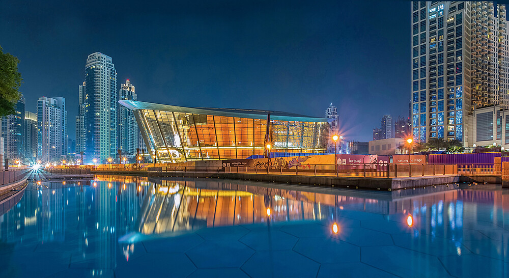 Dubai Opera is a 1901-seat, multi-format, performing arts centre, which is located within The Opera District in Downtown Dubai. It was designed by Janus Rostock of Atkins to host a variety of performances and events including theatre, opera, ballet, concerts, conferences and exhibitions. Its plans were announced by Sheikh Mohammed bin Rashid Al Maktoum in March 2012 and it was completed in 2016. It opened on 31. August 2016 with a performance by Placido Domingo. The linear lighting in the building was realized with solutions from LED Linear™.