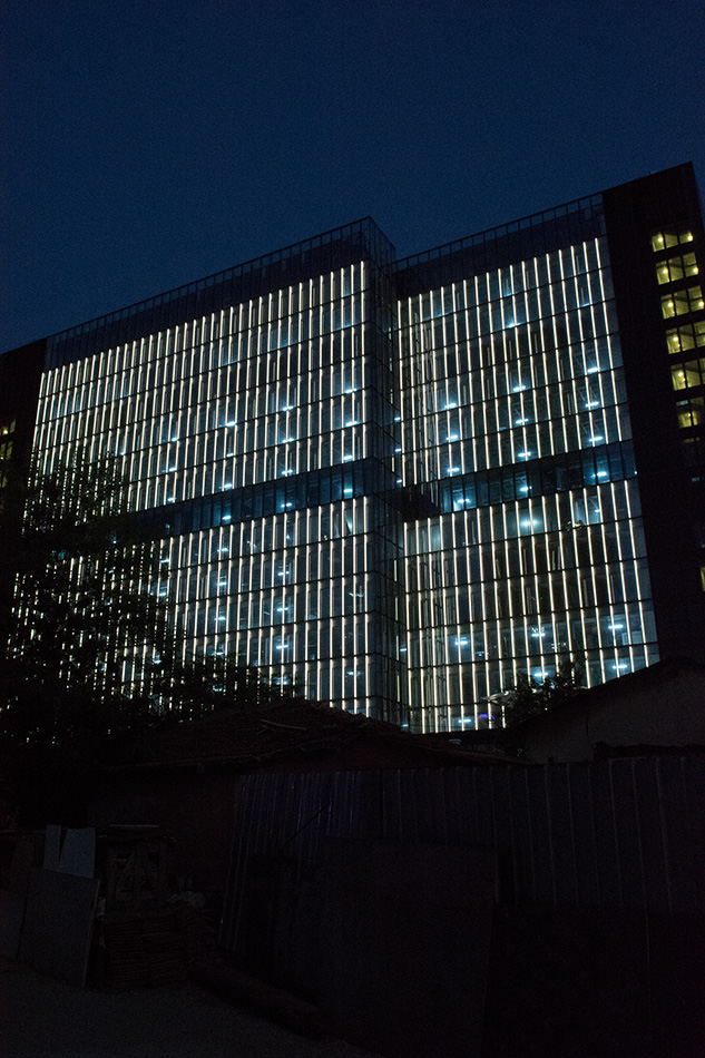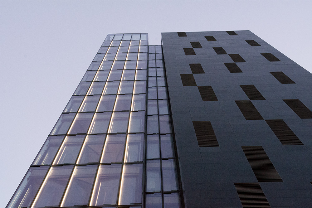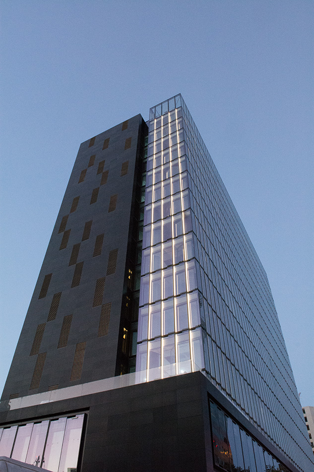 Each façade element has a vertically installed 3.6 m long VarioLED™ Flex NIKE. The façade contains a total of 2,000 fixtures.
