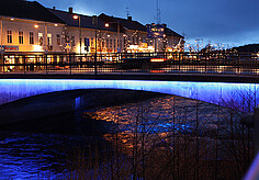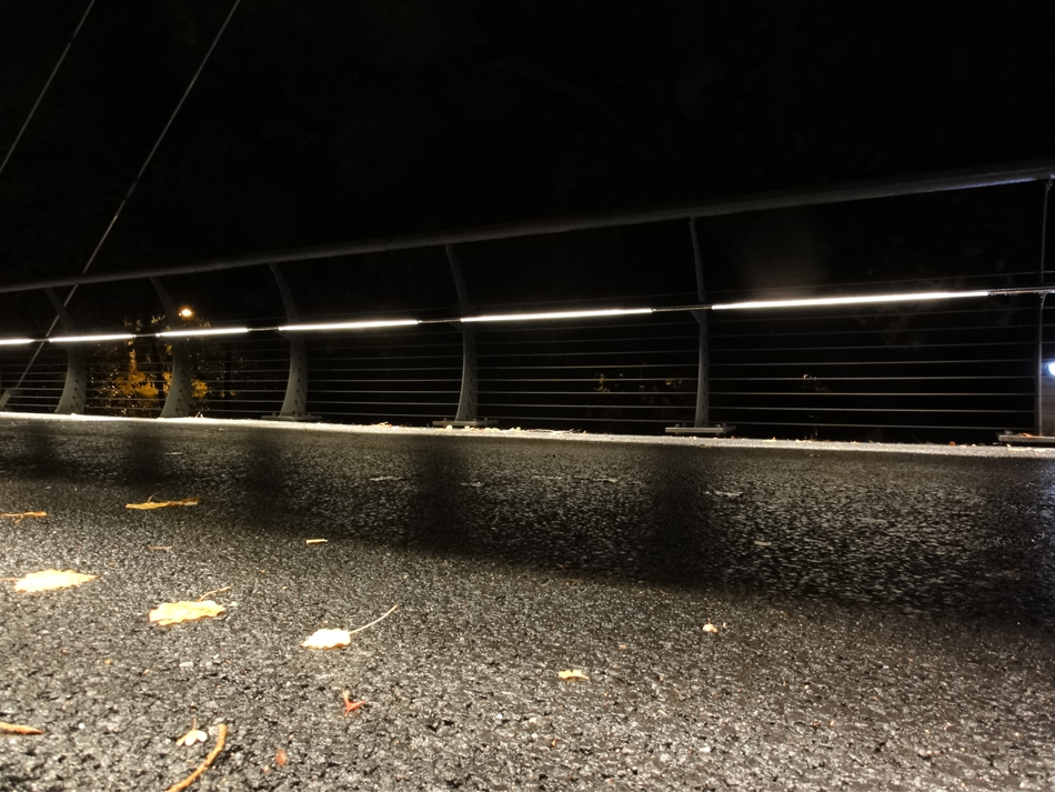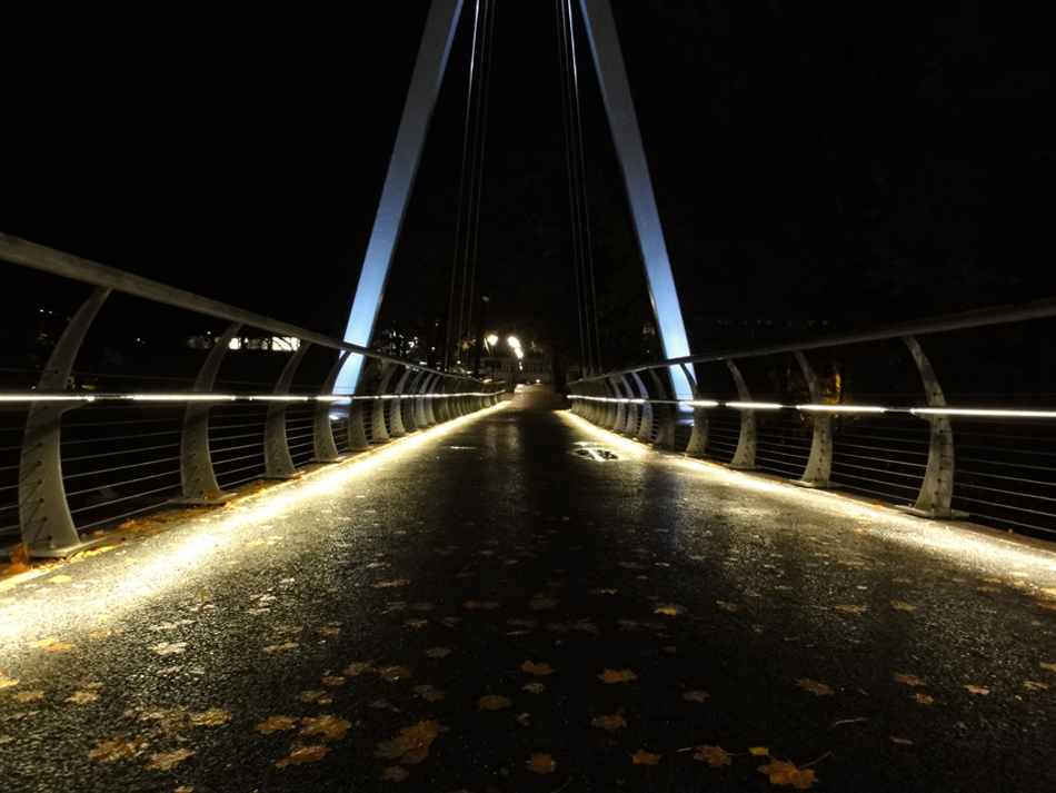 At the pedestrian bridge in the district Partille of the Swedish city Gothenburg the VarioLED™ Flex HYDRA HD6 IP67 has been integrated in the handrail. The diffuse optic ensures a wide, slightly deep light distribution. By thus a pleasant illumination of the bridge was created, which guides pedestrians safely through the city at night.