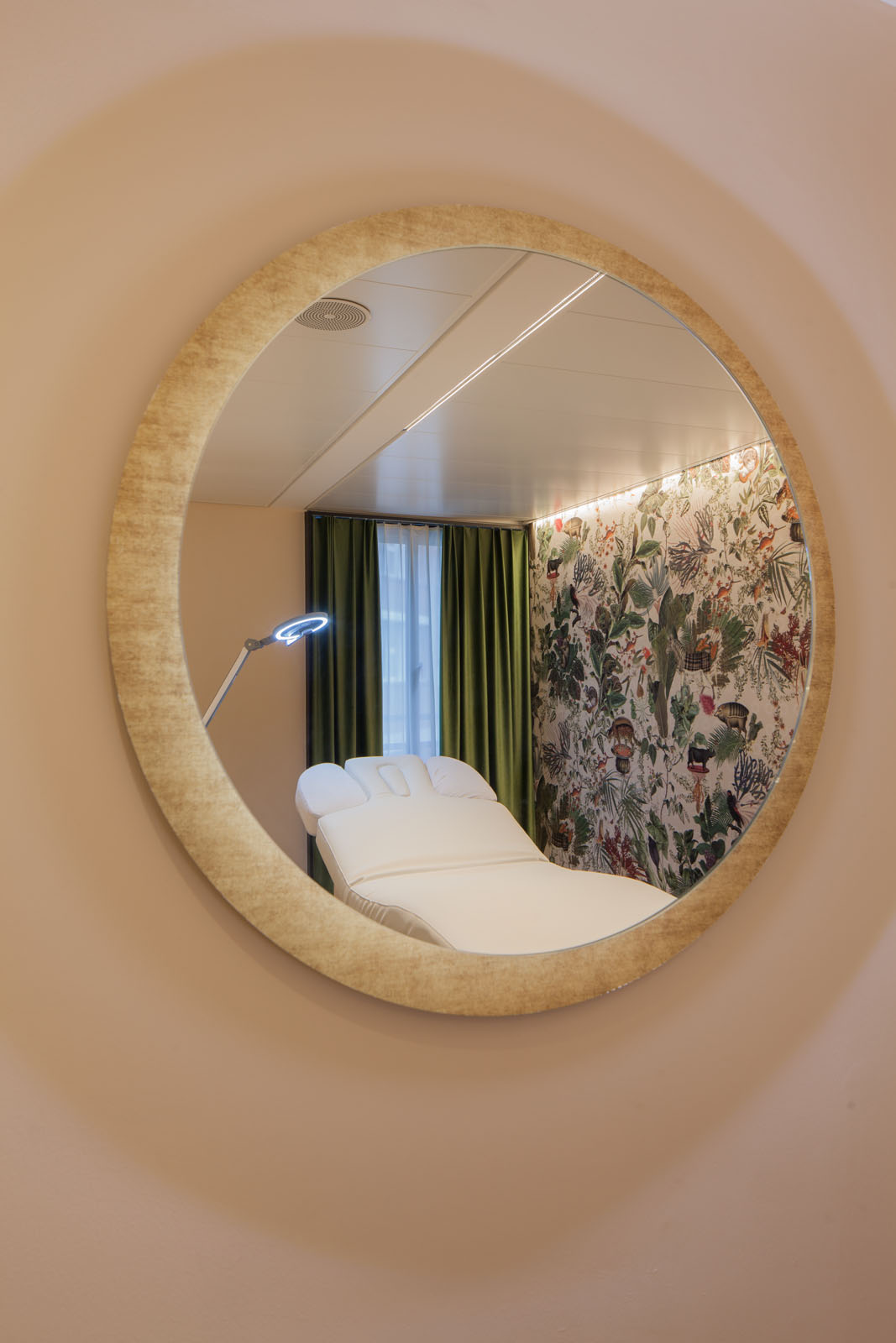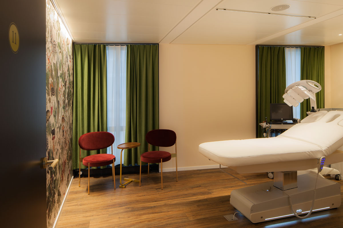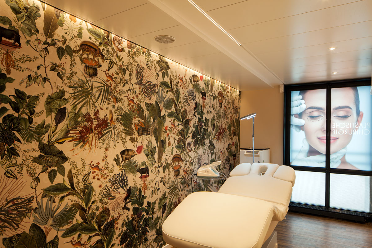 The theme of the Amazon is echoed in the treatment rooms through stylish wallpaper featuring floral and animal motifs. The ULTIMA-S, a miniature LED light, provides uniform illumination of the exotic jungle world and its beautiful details.