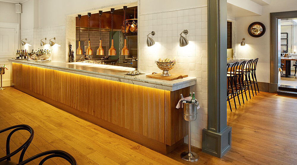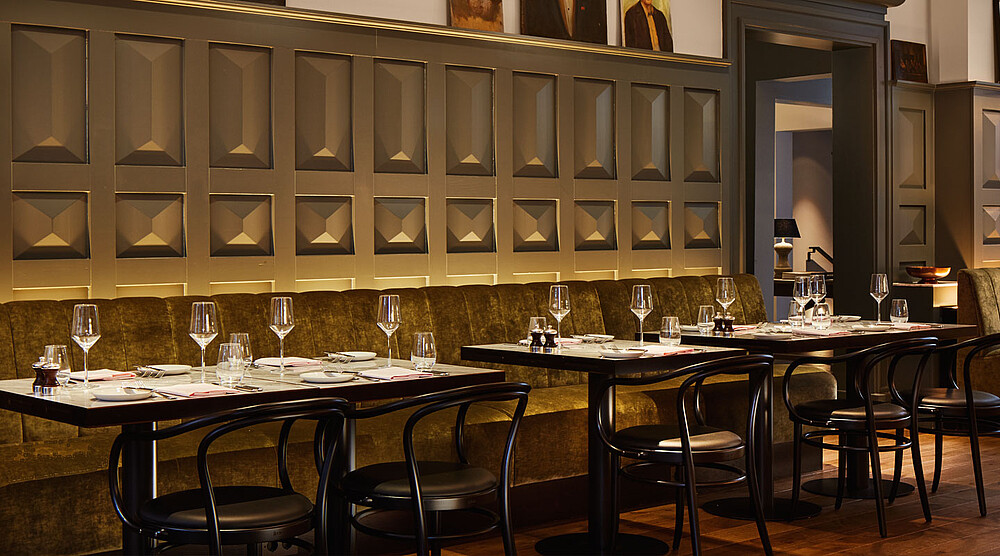 The lighting was also renewed during the renovation. Linear light is now used to create a warm atmosphere and to maximize the effect of the architecture in the public rooms of this hotel. In the hotel bar and the restaurant light lines are used at the bar and emphasize the structure of the materials. In the "Saxonburg Room", which can be used as a meeting or banqueting venue, a ceiling cove was created. The pleasant indirect light gives the room a refined ambiente.