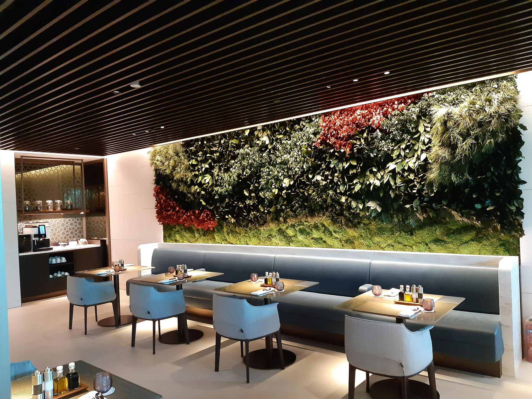 ADONIS ARCHITECTURAL was used in this project to accentuate the moss wall within the lounge and present it as the highlight. The luminaire provides excellent lighting that perfectly showcases the moss wall and enhances the lounge's unique flair.