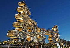 The brickwork at the front of the restaurant was also illuminated vertically with the LYRA. Here, the linear lens with 10° grazing effect was used, which brings out the materiality and structure of the wall.