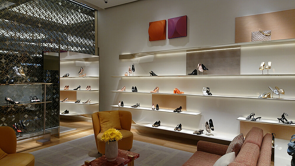 The “Mall of Emirates” in Dubai was opened in 2005 and is one of the largest shopping centres in the world. It houses shops from many leading luxury brands, among others. In the Louis Vuitton shop, VARIOLED FLEX AMOR IP67 luminaires were installed behind the shelves, creating a homogeneous light pattern on the rear walls and thus making the shelves appear to float. The shop is thus provided with discreet yet magnificent lighting.