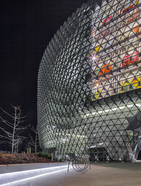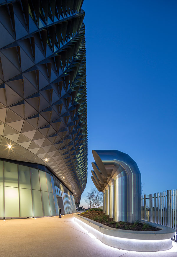 The impressive research facility of SAHMRI (South Australian Health & Medical Research Institute) was built in 2008 in Adelaide. The VarioLED™ Flex SV ECO LD10 IP67 has been installed around the perimeter of the building under the lip of the preformed concrete seating. The light in the concrete casts a white glow that surrounds the iconic architecture of SAHMRI.