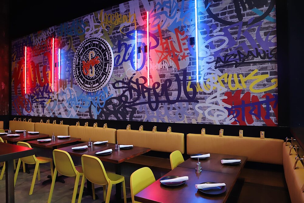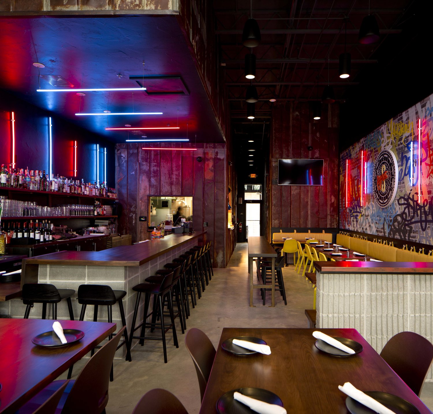 Shade Street Food and Bar wanted the interior of their restaurant to reflect their flavorful menu and eclectic, relaxed environment. Street art meets street food at Shade where a chef-inspired dining experience segues into night with a live DJ and dancing.