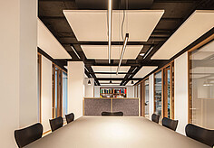 At the reception area of the hotel, the VENUS True Color Optics has been installed in the ceiling to create an optimal grazing effect of the wall pattern. The luminaire is distinguished by its optical brilliance and innovative linear lens technology, which avoids unwanted scallop effects and ensures a homogeneous color gradient as well as uniform brightness. The grazing effect generated by the 20° linear optics subtly highlights the architectural details of the entrance area and creates an inviting atmosphere for the guests.