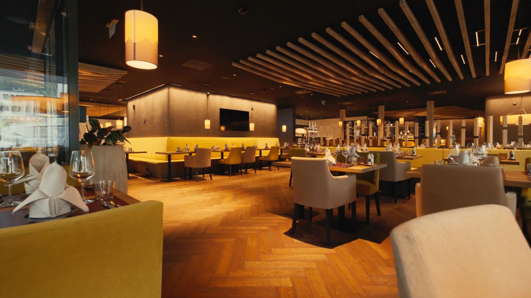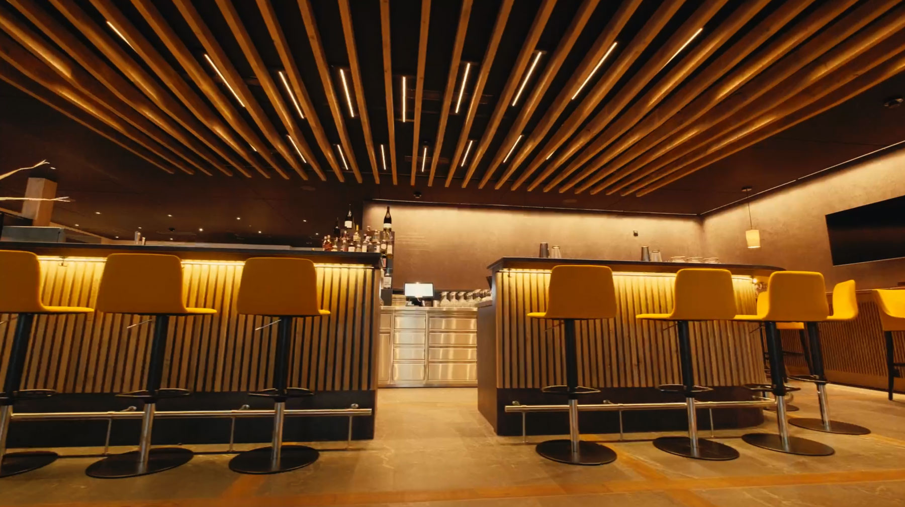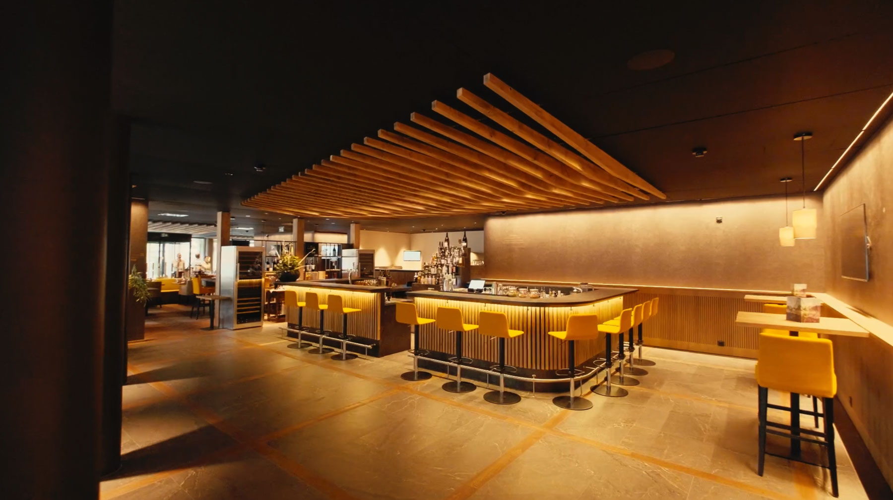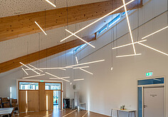 For the Sporthotel Krone in Churwalden, a coherent lighting solution using technical light has been implemented. Serving as the primary illumination source is the ULTIMA-S IP40, a powerful miniature luminaire equipped with nanotechnology. The high anti-glare performance of the LEDs ensures optimal working conditions in conference rooms, eliminating any reflections on mobile phones or tablets. In the restaurant, at the bar, and in the rooms, despite its high luminous intensity, the miniaturized luminaire provides homogeneous illumination of the spaces and a pleasantly warm atmosphere. Positioned between the wooden slats used as design elements, it accentuates them and achieves exciting 3D effects.