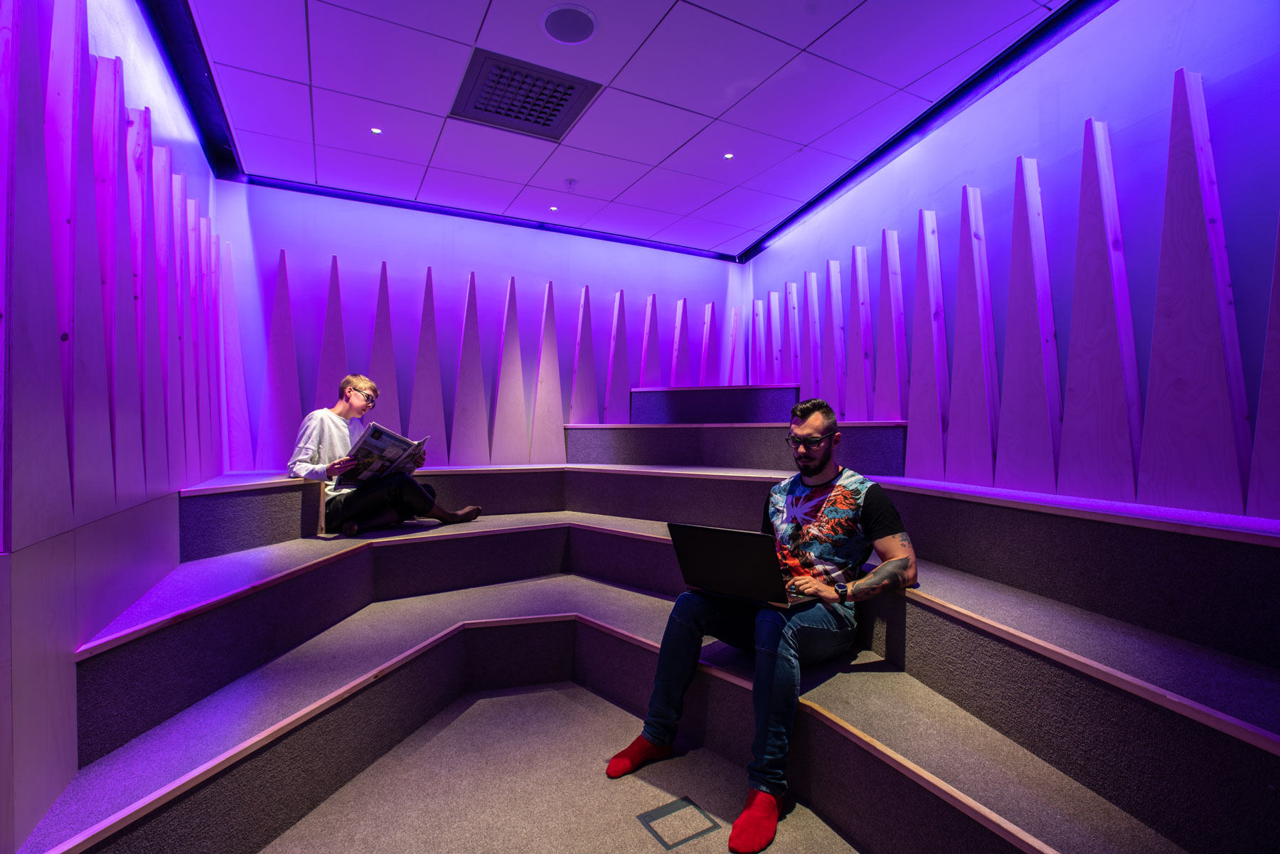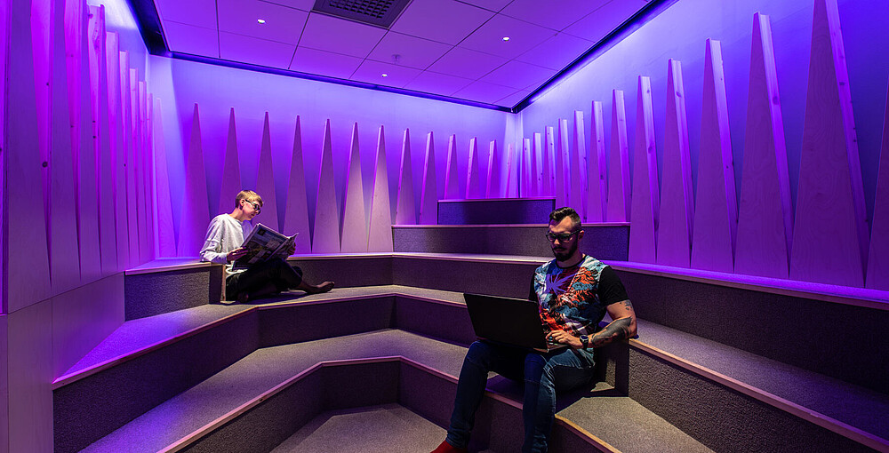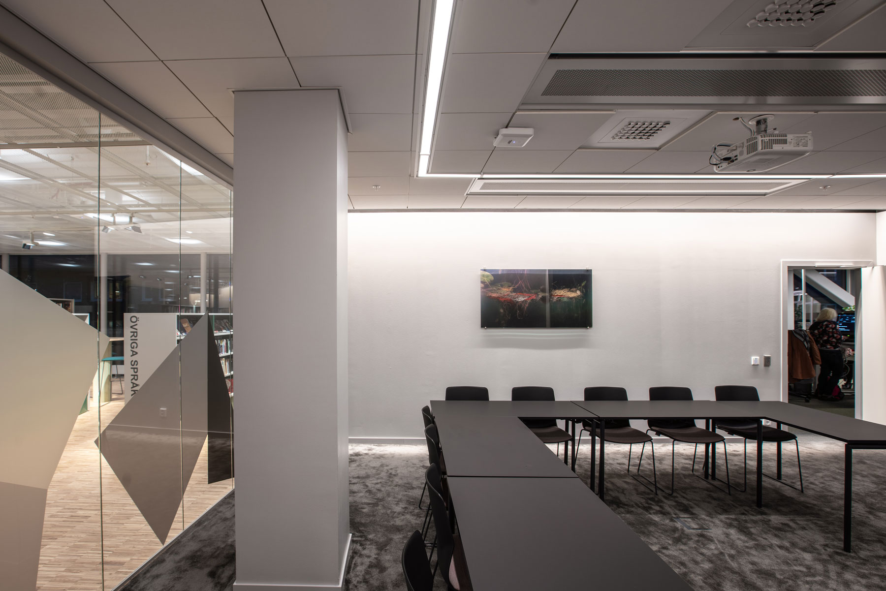 Visitors are welcomed by the lively and dynamic Mölndal Library, which surprises with a varied range of offers and activities. A highlight are the exclusive, colorfully illuminated reading rooms, which are equipped with narrow-beam XOOLINE™ RGB 10° IP40 LED luminaires that promise a pleasant and unprecedented reading experience. The meeting rooms in the library are also equipped with XOOLINE™ HD25 10° IP40 LED luminaires and invite guests to regular meetings.