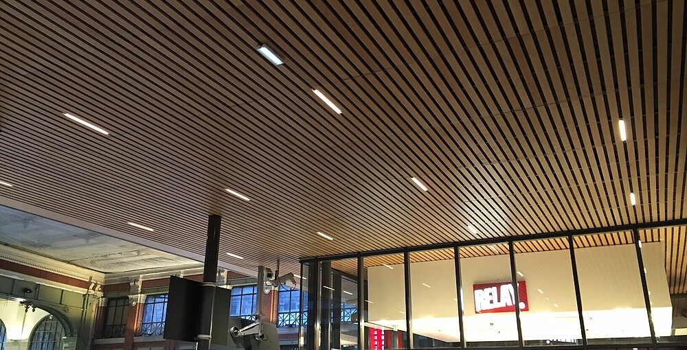 The replacement was carried out with over 100 XOOLUM™ reflector luminaires, which efficiently illuminate the beautiful areas of the station and platforms. The installation of the LED luminaires blends discreetly into the wood laminate ceilings.