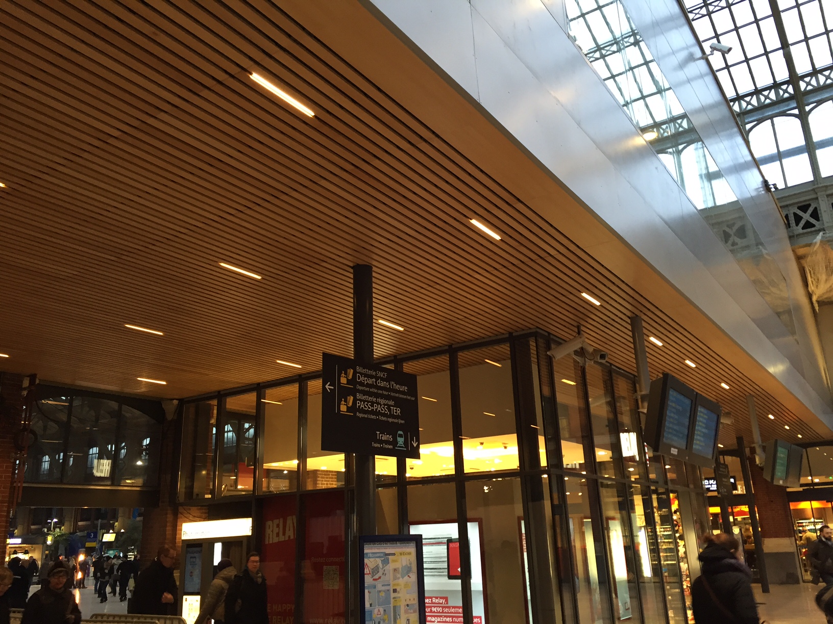 Lille Flandre station had a contract to renovate the busy interior passageway and replace the old fluorescent tubes with more dynamic and economical lighting.