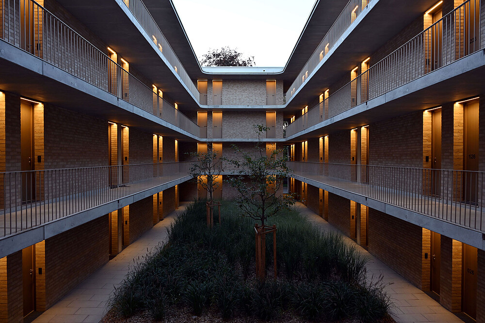 In this project, the courtyard of a student residence in Ingolstadt was skillfully illuminated with the XOOLINE IP67 serving as the light source. Instead of opting for bright, direct light, strategically placed indirect light sources were installed above the apartment doors. The result showcases a courtyard that shines in a special brilliance. The warm, soft light of the XOOLINE IP67 gently radiates downward, creating a cozy atmosphere and casting diffuse, soft shadows on the ground. This thoughtful lighting imparts an inviting ambiance to the courtyard, providing a pleasant space for the residents.