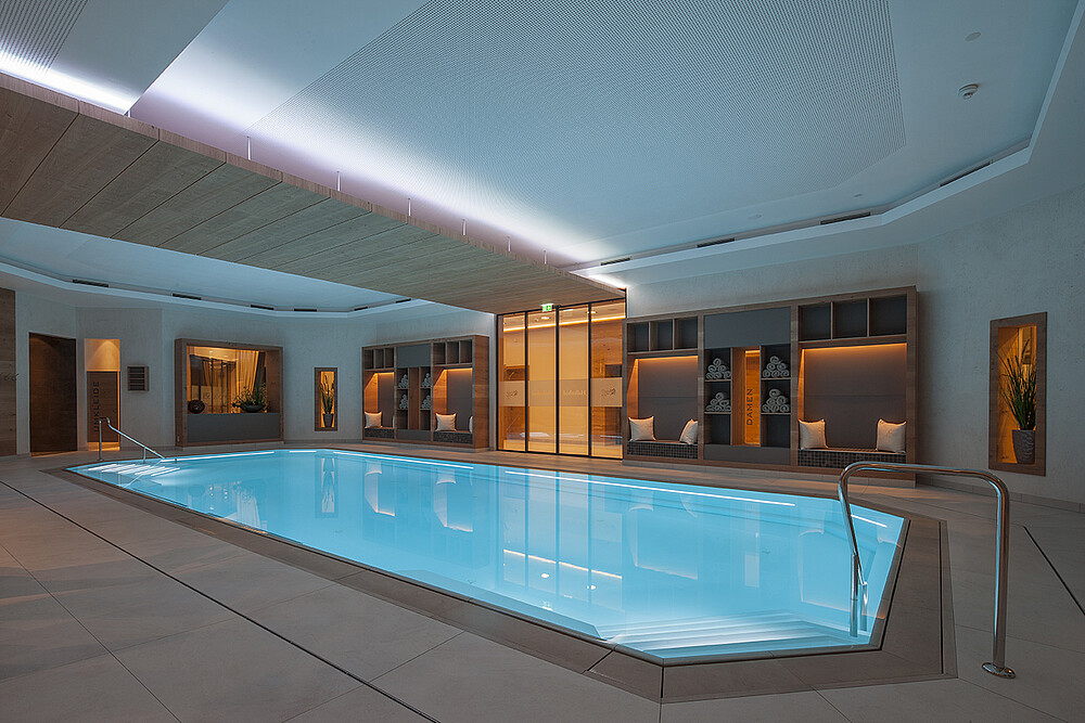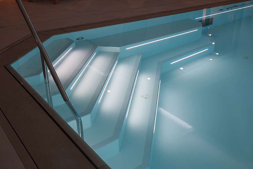 The Hotel Grünauerhof in Salzburg, Austria is perfect for your vacation in every season. In order to achieve total relaxation, the hotel uses NEPTUNE RGB in the pool in the wellness area to create a pleasant atmosphere with atmospheric light.