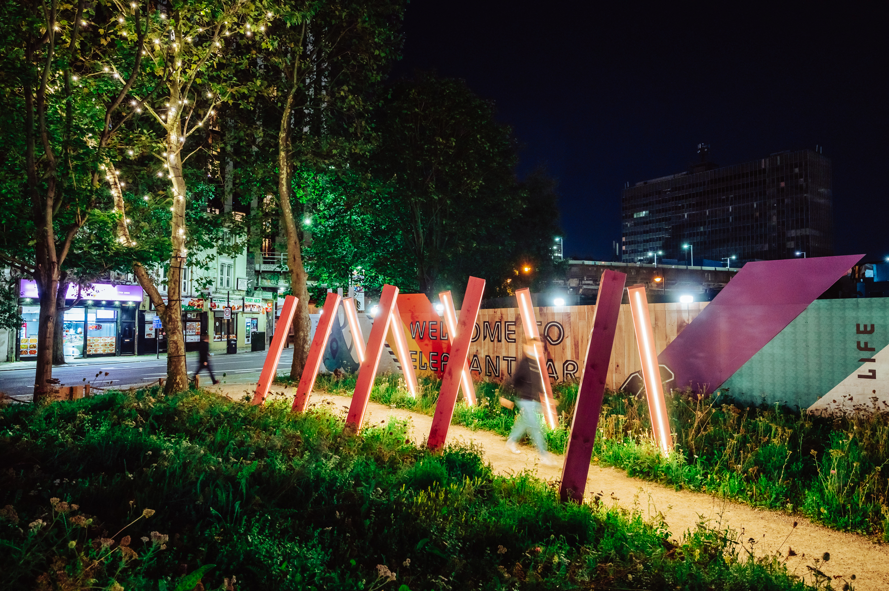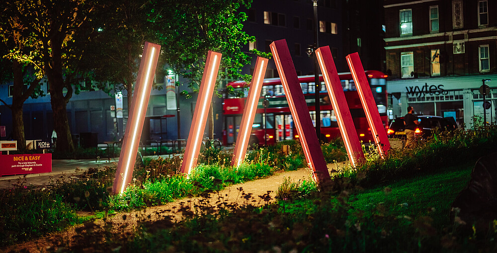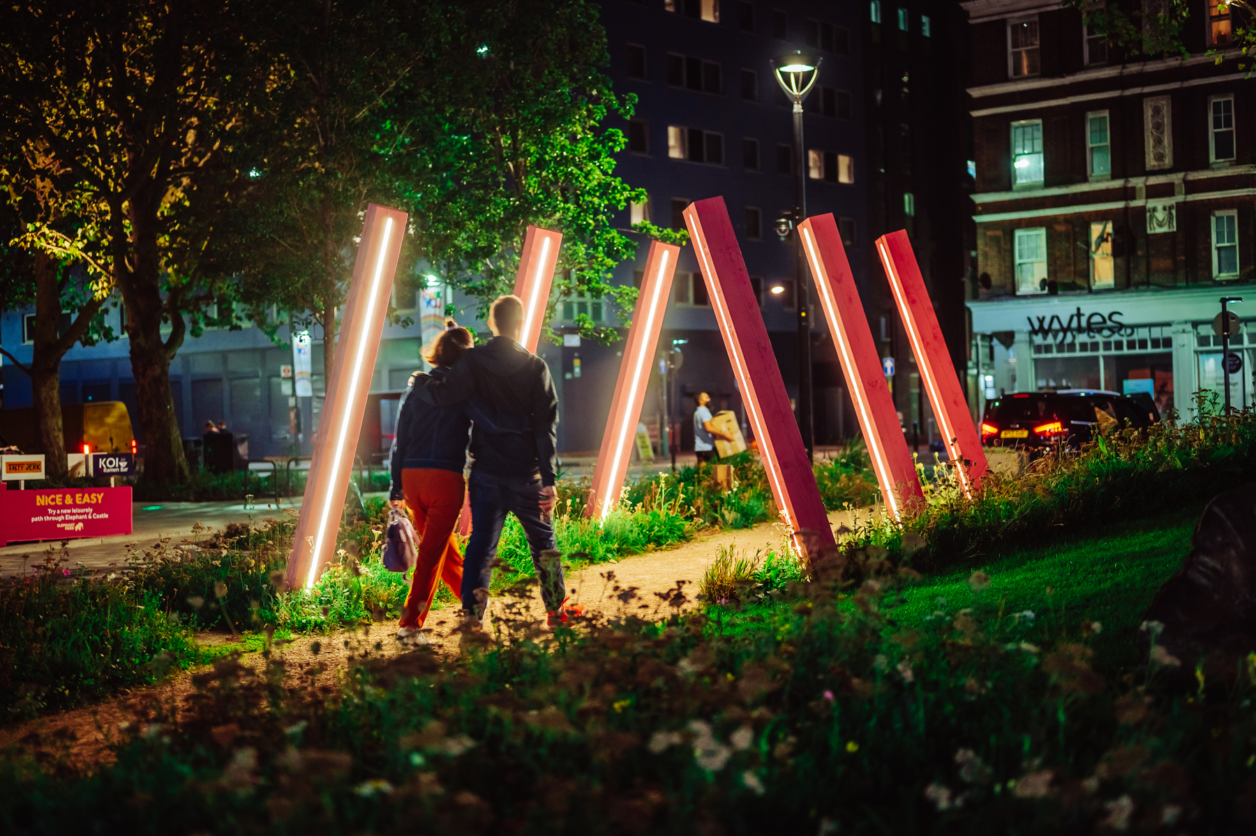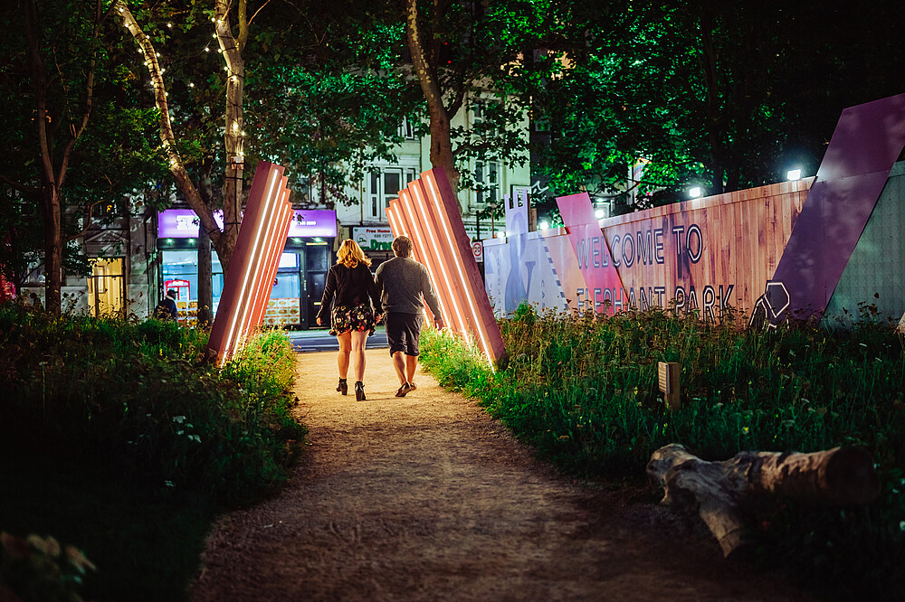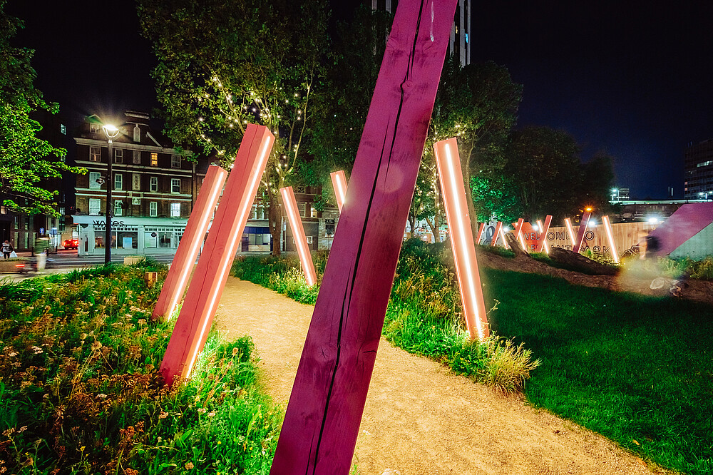 Designed to capture the imagination of all ages, this bio-diverse scheme is brought to life through sculpture, natural play and places to rest. It’s a meanwhile space that aims to educate and engage users on the importance of urban pollinators. B|D Landscape Architects designed the pocket park to create a playful wildflower tapestry, with a life-size willow woven elephant and towering tulips.
