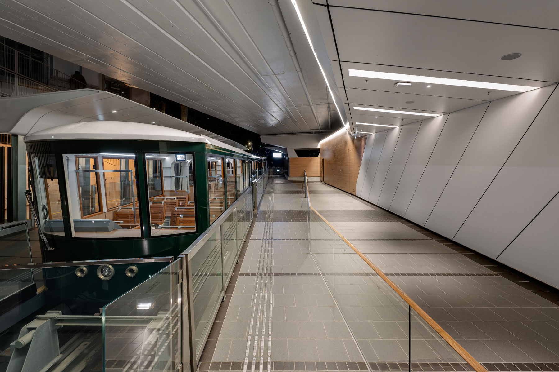 The combination of the historic cable car and modern LED lighting solution creates a unique and appealing atmosphere on the Peak Tram platform. Passengers can not only enjoy the impressive views but also have a comfortable and safe experience during their ride.