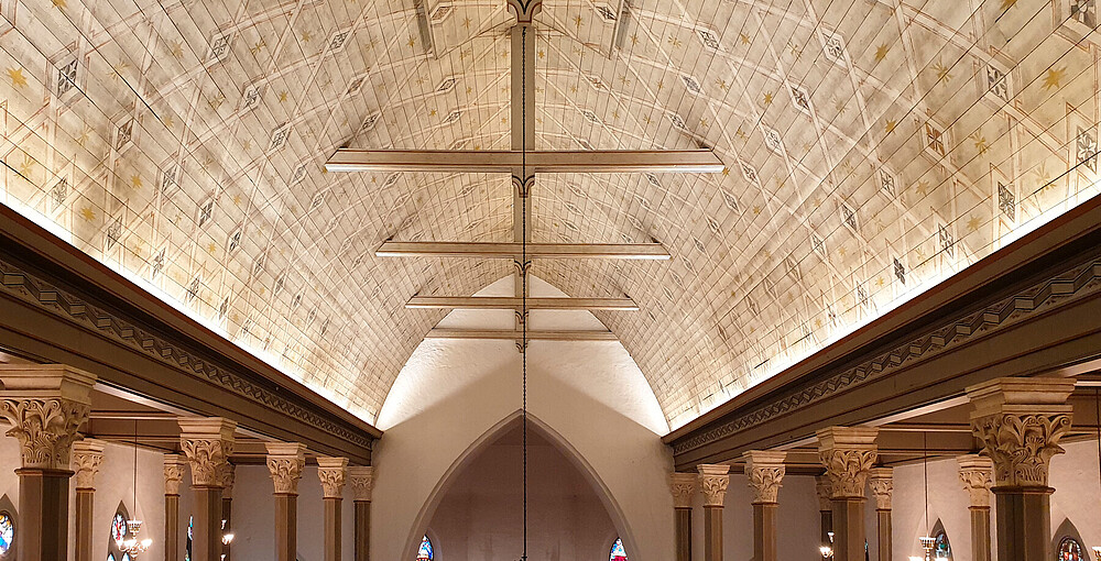 The ceiling of the old cathedral was redesigned with cove lighting. XOOLINE™ HYDRA LD15 was used in 3,000 K with the 30° lens.