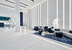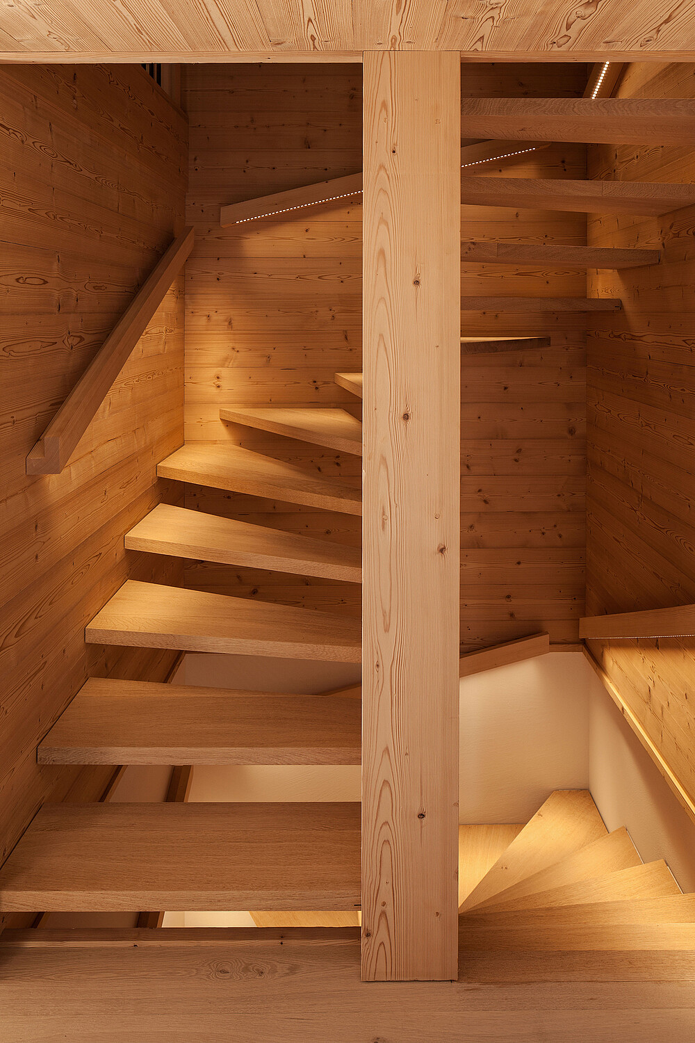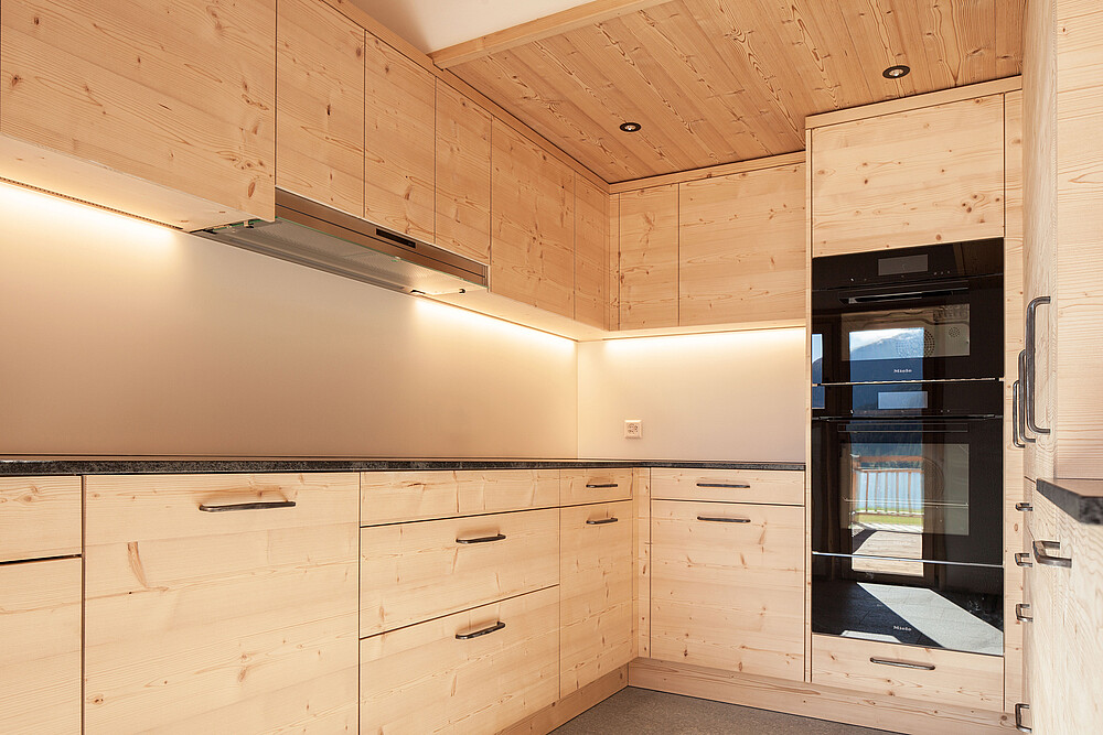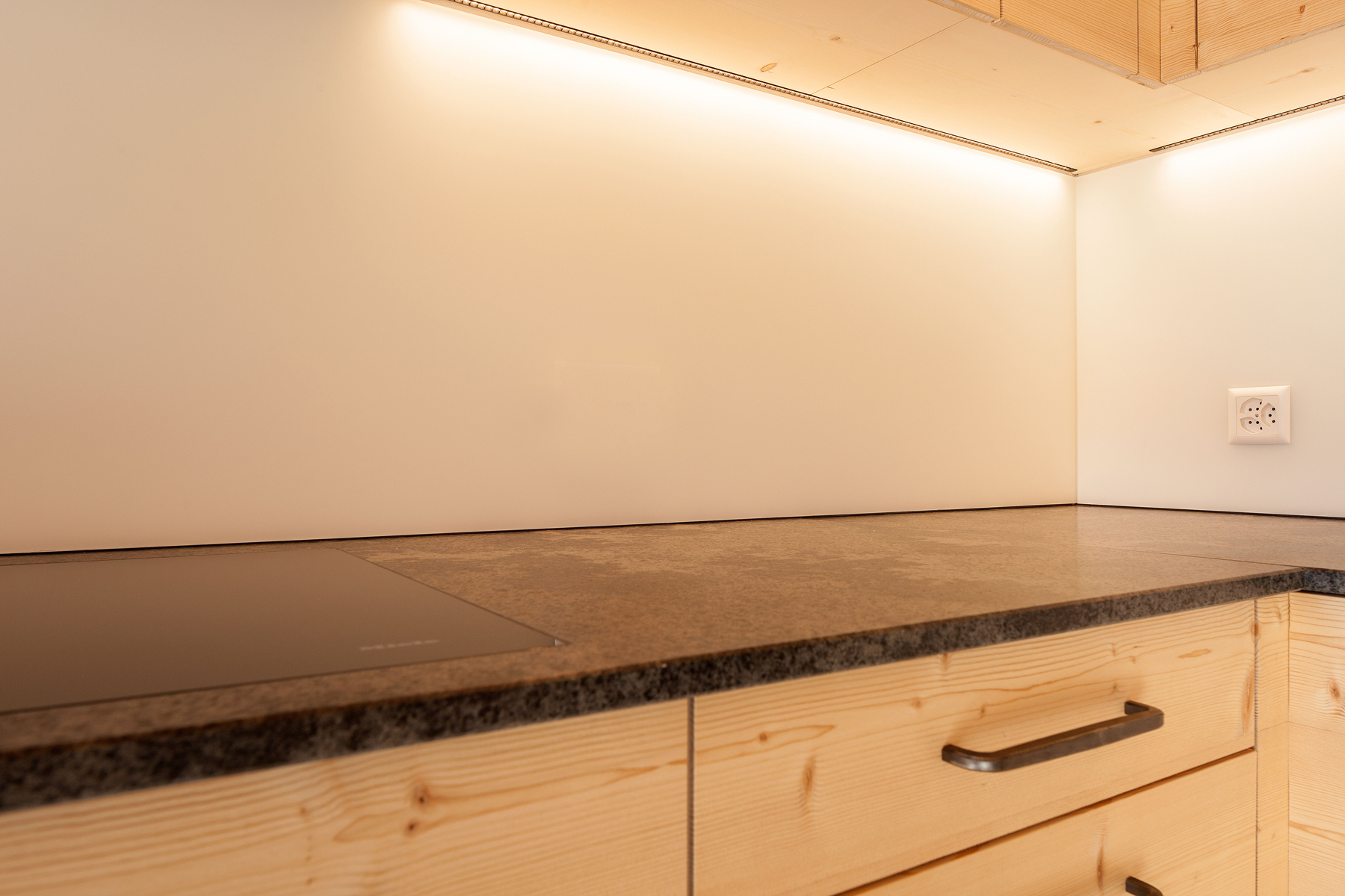 The unique Strickhaus, built in 1992 shines now in a new light. As the rooms have relatively low ceilings, a new technology is used which is ideally suited for such situations: Luminaires measuring only 10 mm x 13 mm and needing minimal installation depth are slotted into the ceilings. Thanks to their integrated glare-control, no reflections are seen in the surrounding windows as night falls, which is particularly effective in this property with its magnificent views. The same ISO-certified technology was used for the staircase, kitchen, downlighting, mirror backlighting and indirect lighting throughout, which also saves resources and energy.