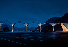 For this project, the KAPLYPSO IP67 was installed with a 60° linear lens optic. The fixture is very minimalistic being (H x W) 25.5 mm x 20.5 mm, but with sufficient light output to sufficiently illuminate the ground surface. A warm color temperature of 2700 K was chosen to emphasize the atmospheric, warm design of the copper. The result is an almost homely atmosphere that makes traveling a cozy experience.