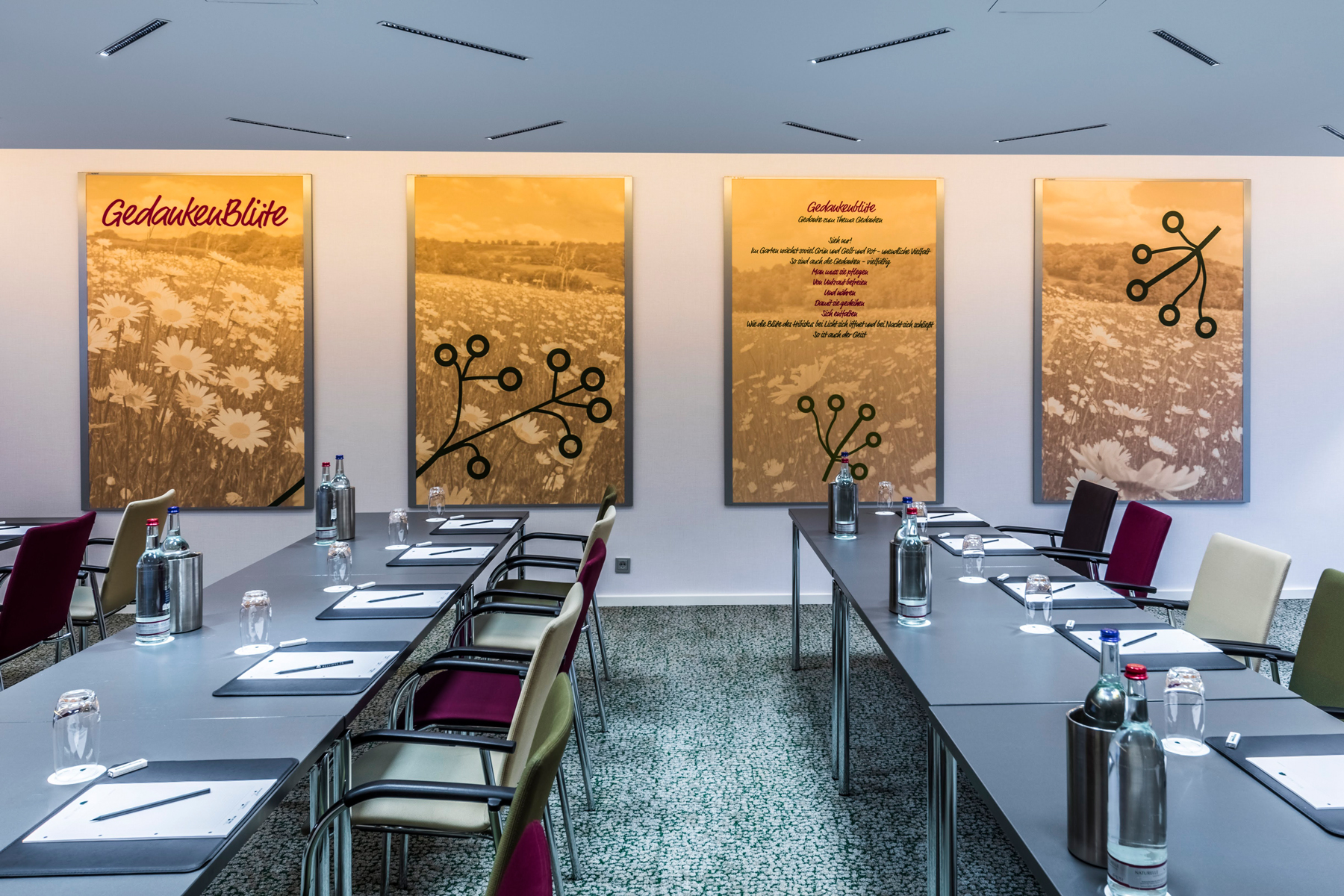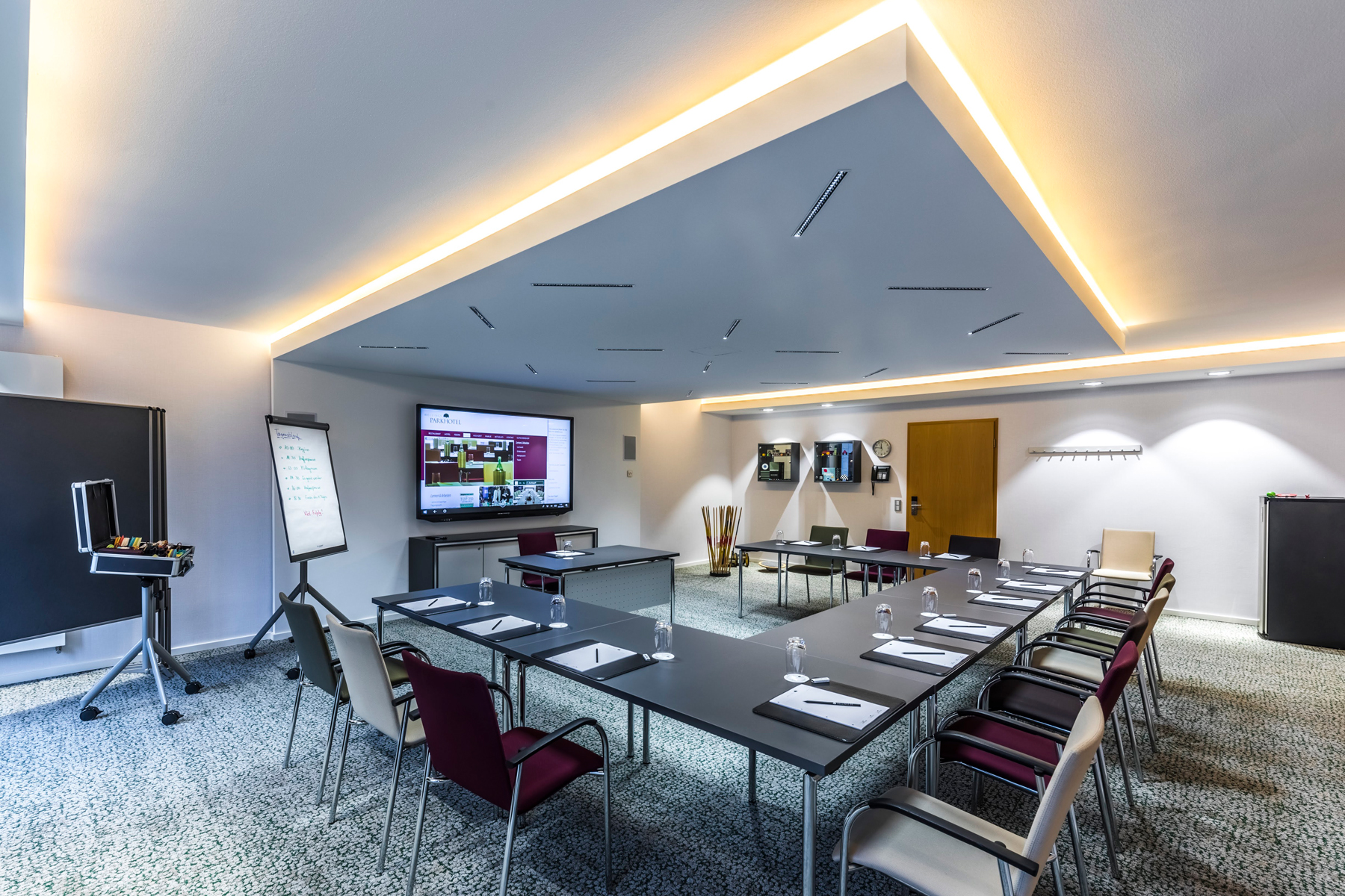 For the exchange of ideas, the creation of new concepts and the transformation of challenges into opportunities, the meeting rooms of Wellings Parkhotel offer a modern environment. The lighting concept with the recessed solution of MARS ARCHITECTURAL with 65° optics provides glare-free light and disappears almost invisibly into the suspended ceiling. Coving with the XOOCOVE luminaire provides further indirect light.