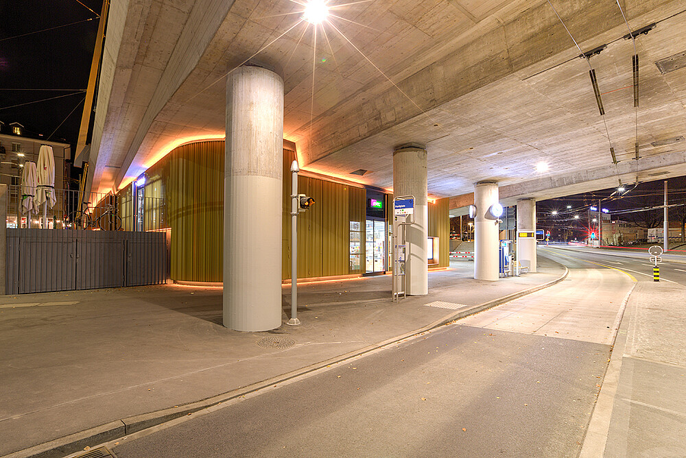 The high street "Hardbrücke" forms one of the most important traffic axes through the city of Zurich. As part of the expansion of the first tram line over the bridge, the Hardbrücke station was expanded and the Hardplatz was redesigned.