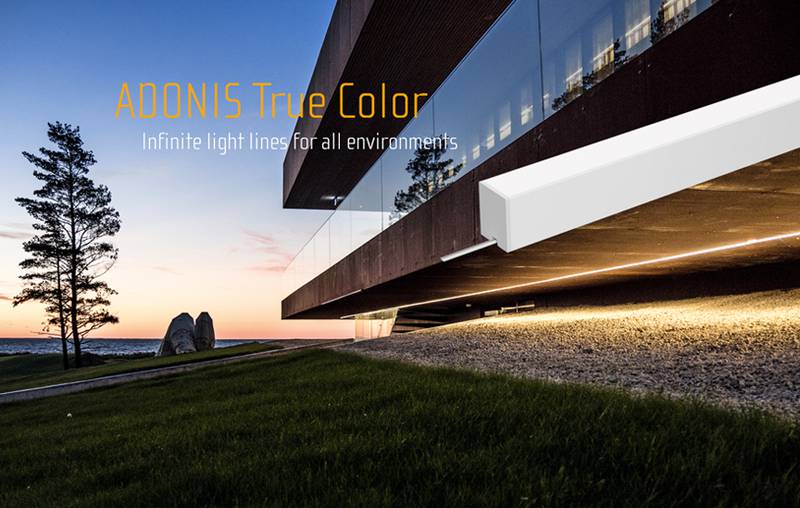 Creating visual effects with linear light adds a further dimension to architecture. By integrating light to a facade, it’s possible to design an eye catching building with distinct, slim, lines of light. By making it possible to add infinite lines of light. ADONIS True Color is based on a functional powder coated aluminum profile in combination with polyurethane encapsulation which provides a high degree of robustness.
