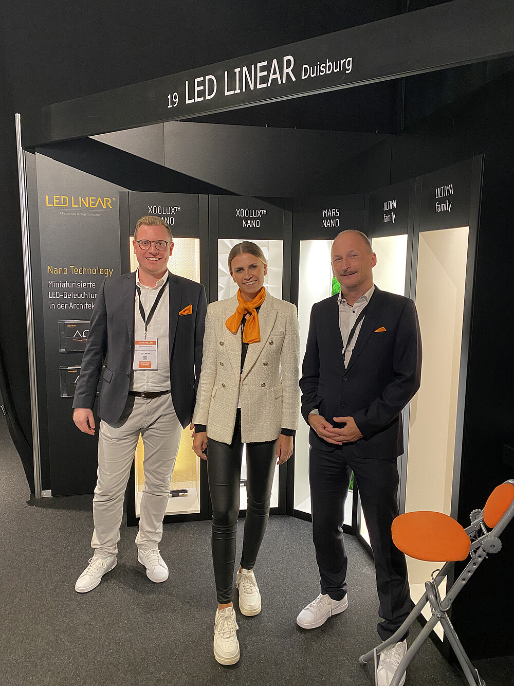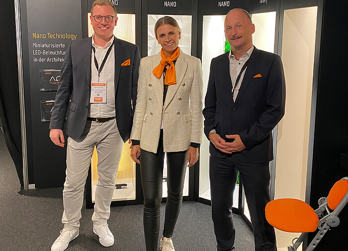 The products XOOLUX™ NANO,MARS NANO and ULTIMA, all equipped with NanoRay technology, were shown in individual niches. This makes miniaturized LED lighting in architecture effortless and creates a unique lighting effect and atmosphere by the choice of materials.